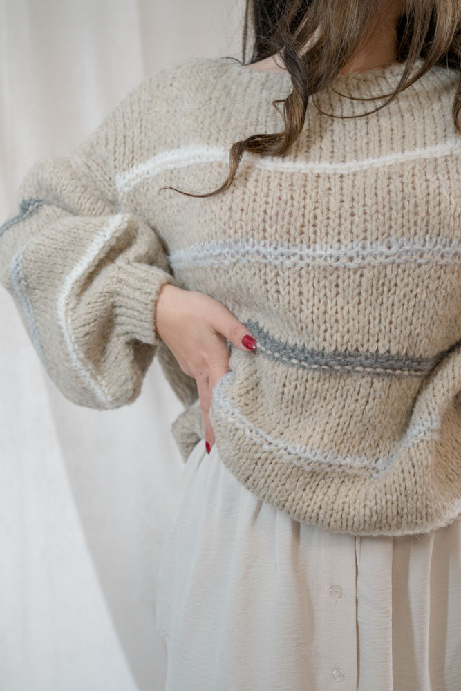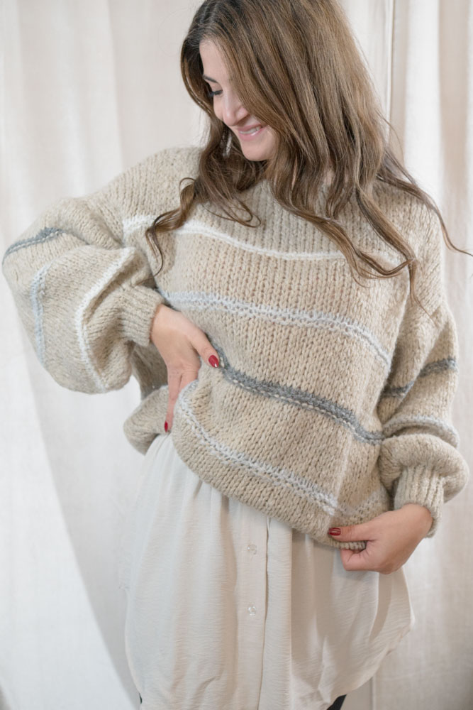 Ein super weicher Strickpullover mit Streifen in verschiedenen Farben.