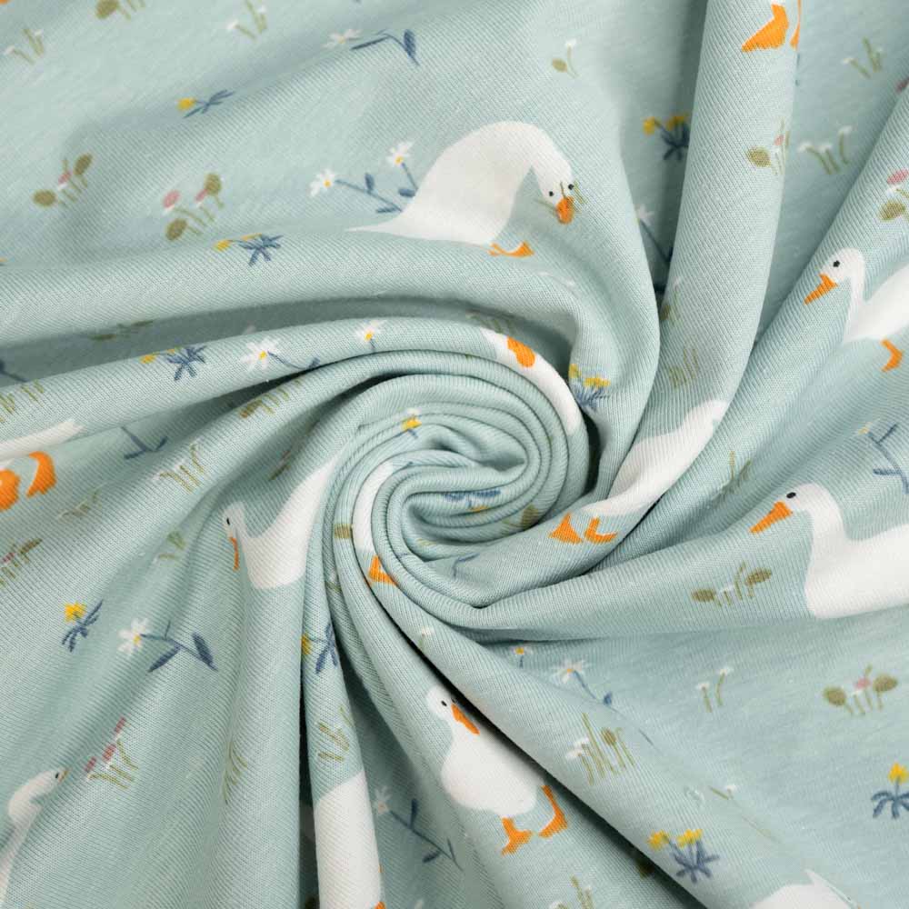Qualitativ hochwertiger Baumwolljersey, welcher ideal geeignet ist für Babykleidung und -accessoires, sowie für jegliche Ober- und Unterbekleidung, Röcke, Kleider, Tops, Shirts, Hosen, Mützen, Loops, Sport und Freizeitbekleidung etc.