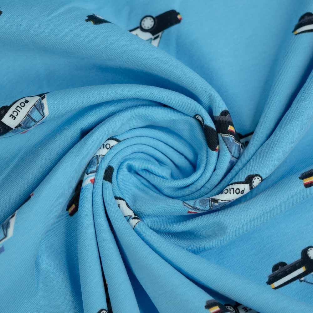 Baumwolljersey Police Auto hellblau