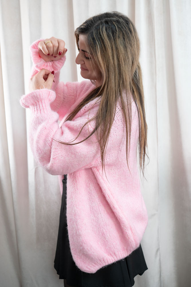 Super softer Oversized Strick Cardigan mit süßen Rüschenärmeln hergestellt in Italien.