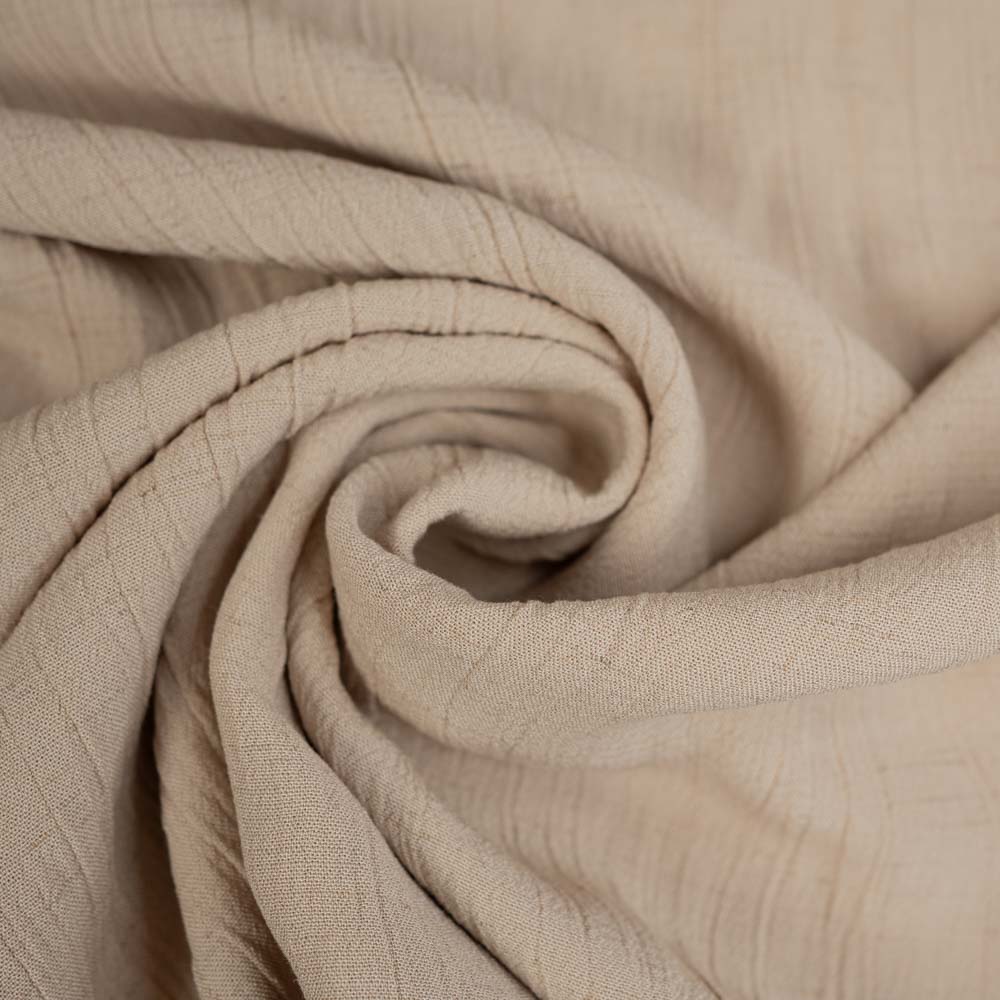Der Viskose-Leinenstoff mit einer trendigen Crinkle Struktur vereint Leichtigkeit, Weichheit und Atmungsaktivität. Er fällt fließend, fühlt sich angenehm auf der Haut an und eignet sich ideal für Bekleidung.
