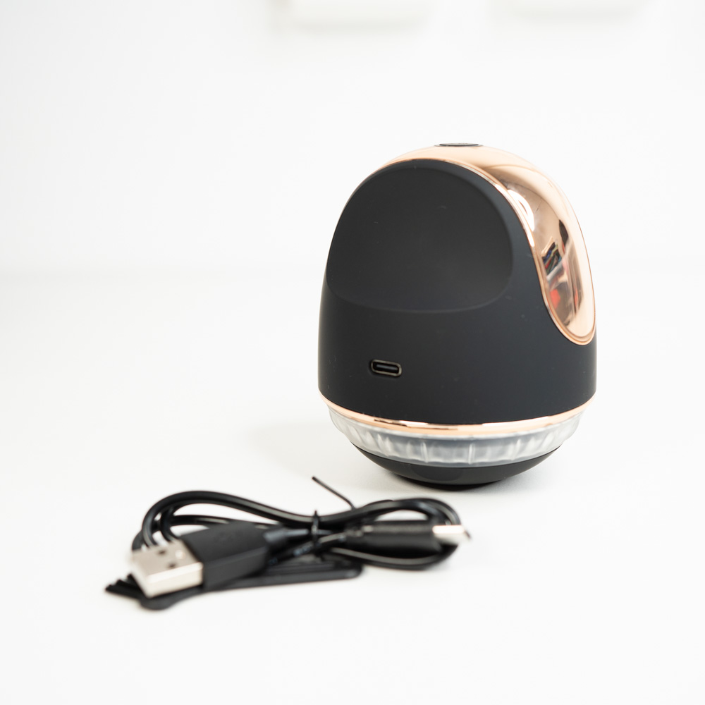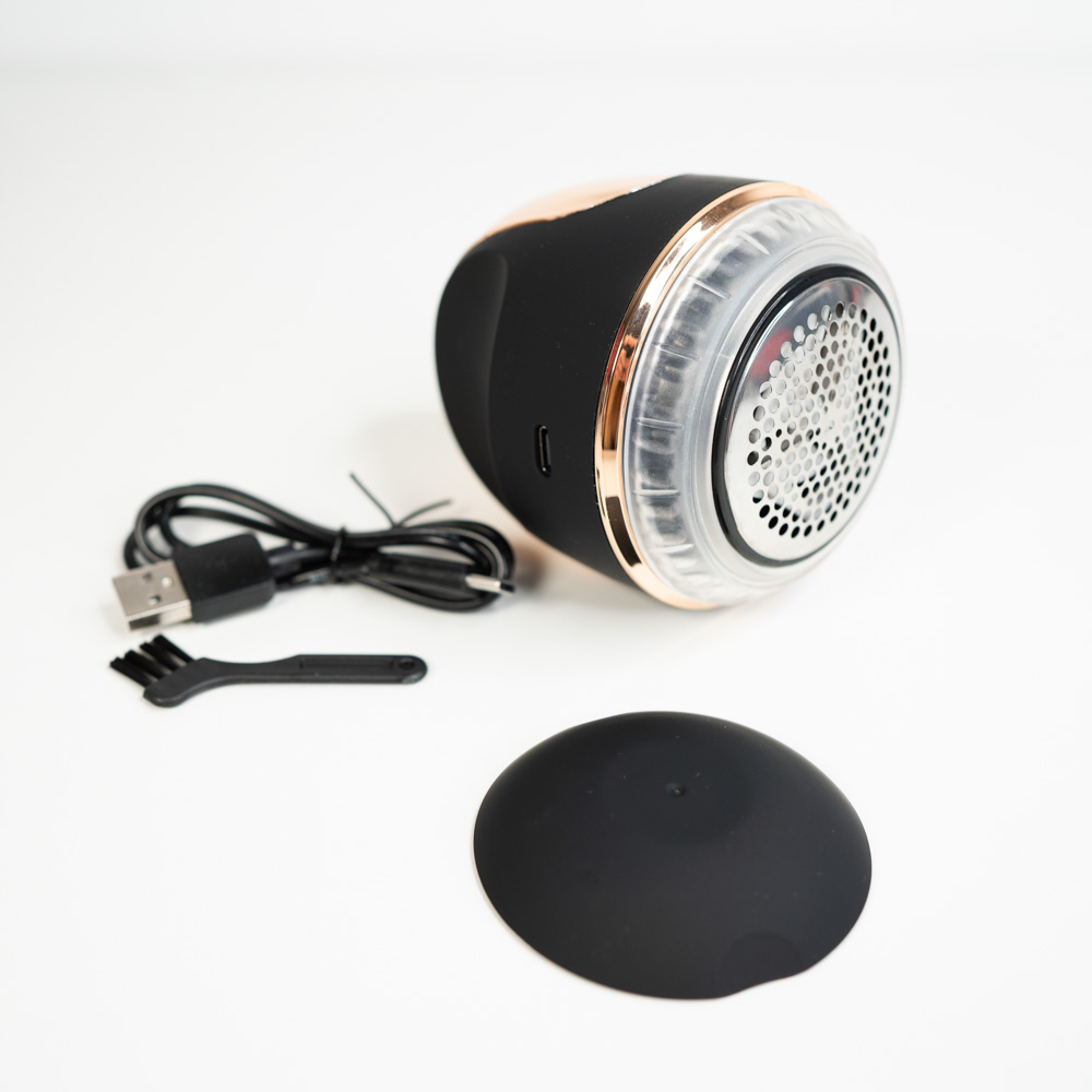 Woll- und Fusselrasierer in ergonomischer Form. Durch seine runde Form liegt das Gerät sehr gut in der Hand. Mit magnetischer Schutzkappe und Ladekabel.