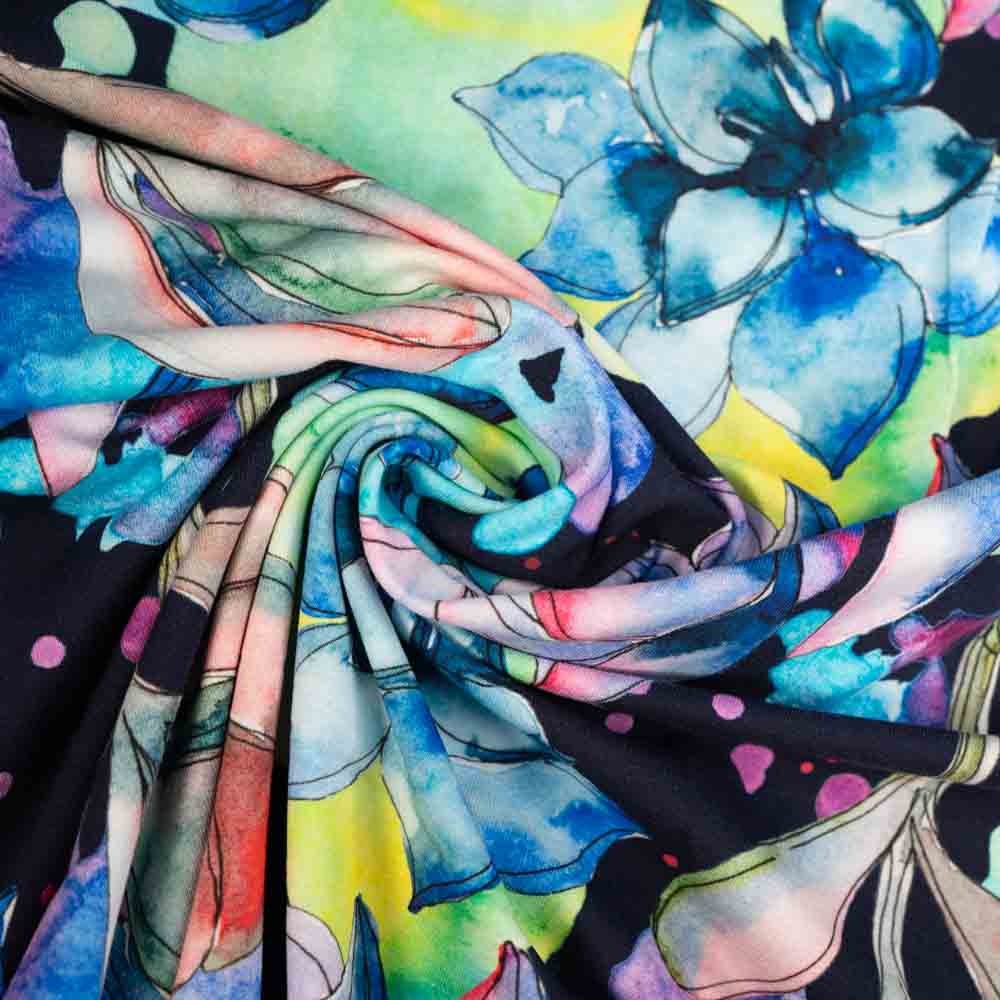 Baumwolljersey Aquarell Magnolie navy