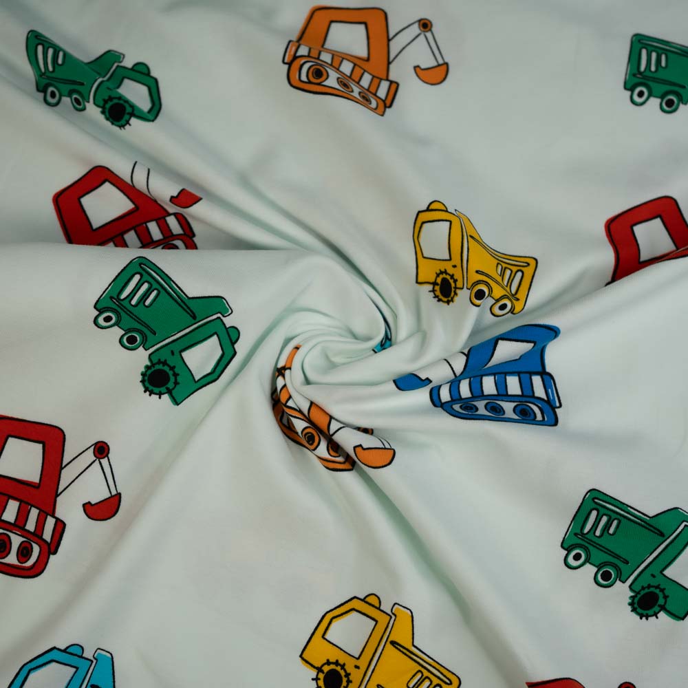 Baumwolljersey Baustellenfahrzeuge pastellblau