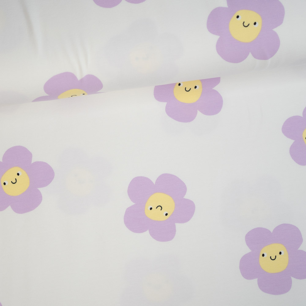 Baumwolljersey Happy Flowers :) ecru