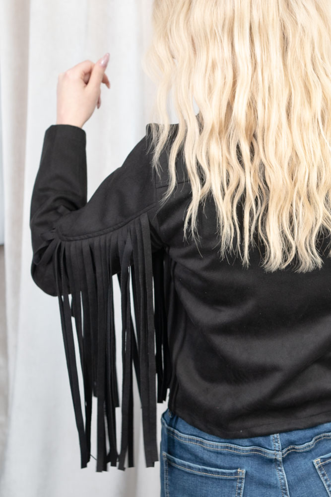 Fransenjacke Wildlederimitat Cowgirl schwarz