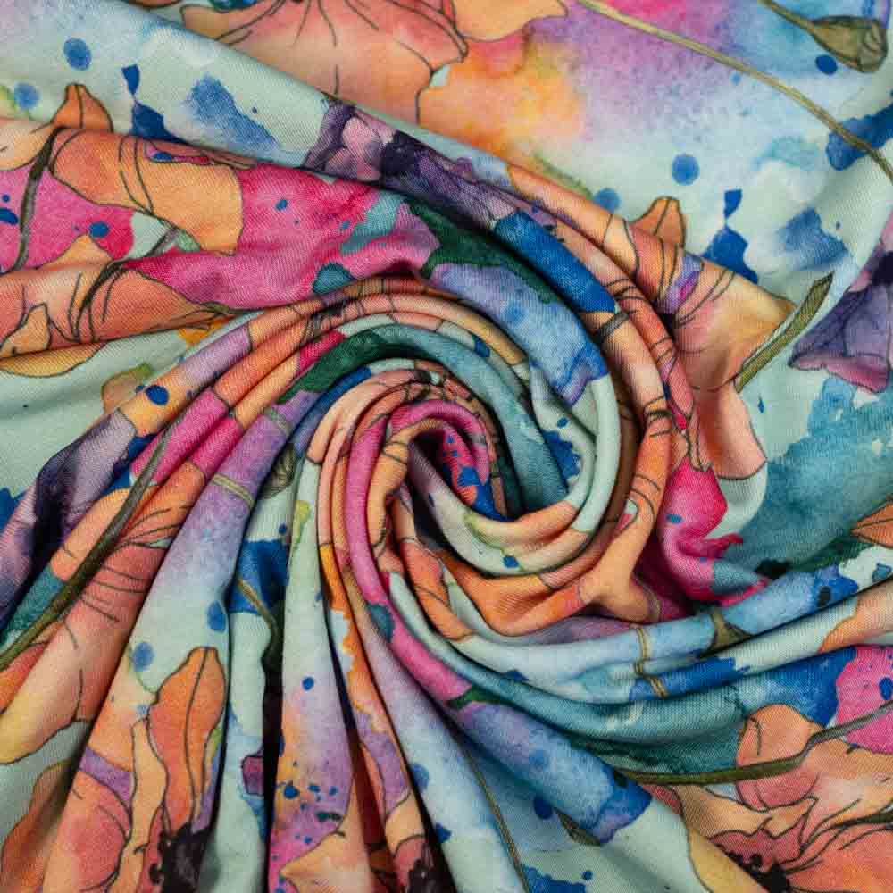 Bamboo Jersey Aquarellblumen mint