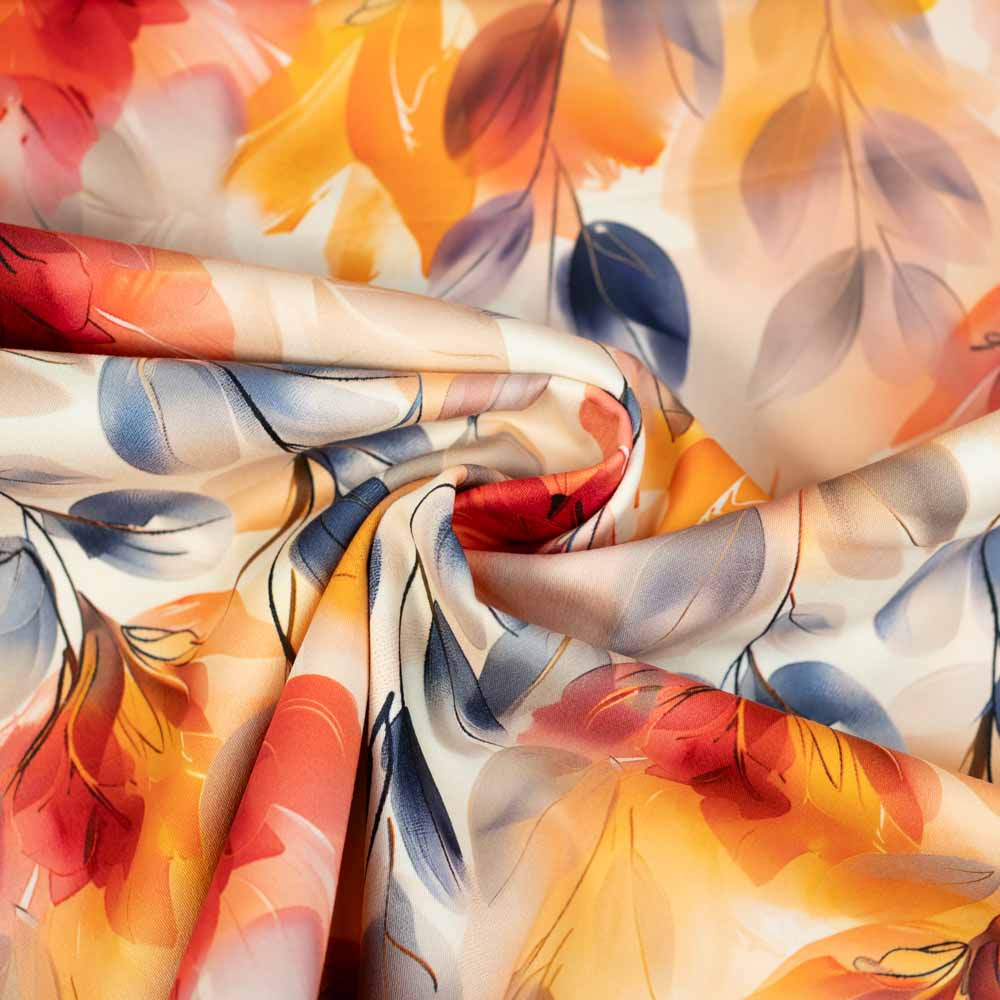 Baumwolltwill Stretch Aquarellblumen hellbeige