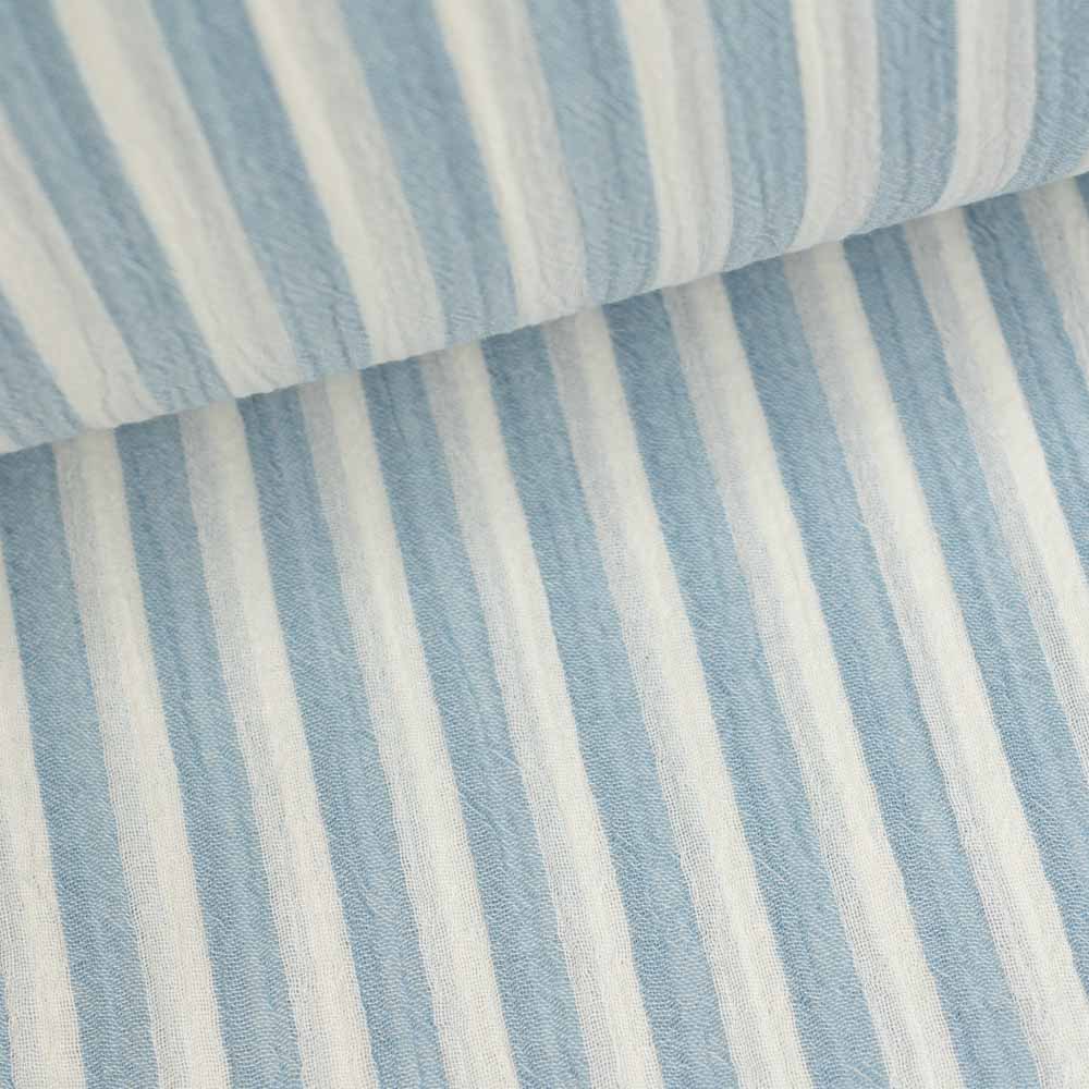 Diese Musselin Double Gauze ist beidseitig nutzbar - die eine Seite hat feine Streifen und die andere breite Streifen . Die leichte und luftige Beschaffenheit des Stoffes macht ihn perfekt für warme Tage oder als Schichtung für kältere Tage.