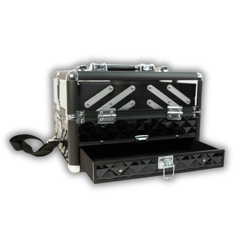 Edler Multikoffer mit Tragegurt, ausgekleidet mit Samtstoff, abschließbar. Perfekt für Nähutensilien, Kosmetik, Schmuck und vieles Mehr.