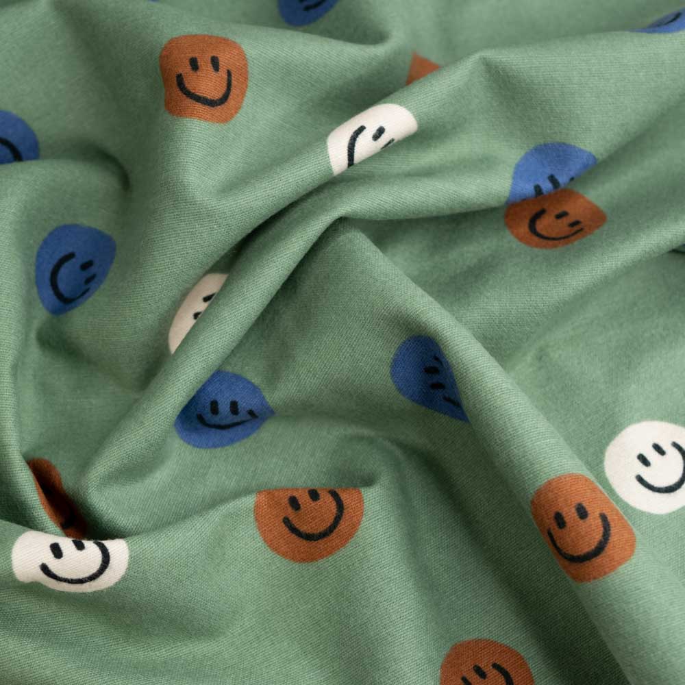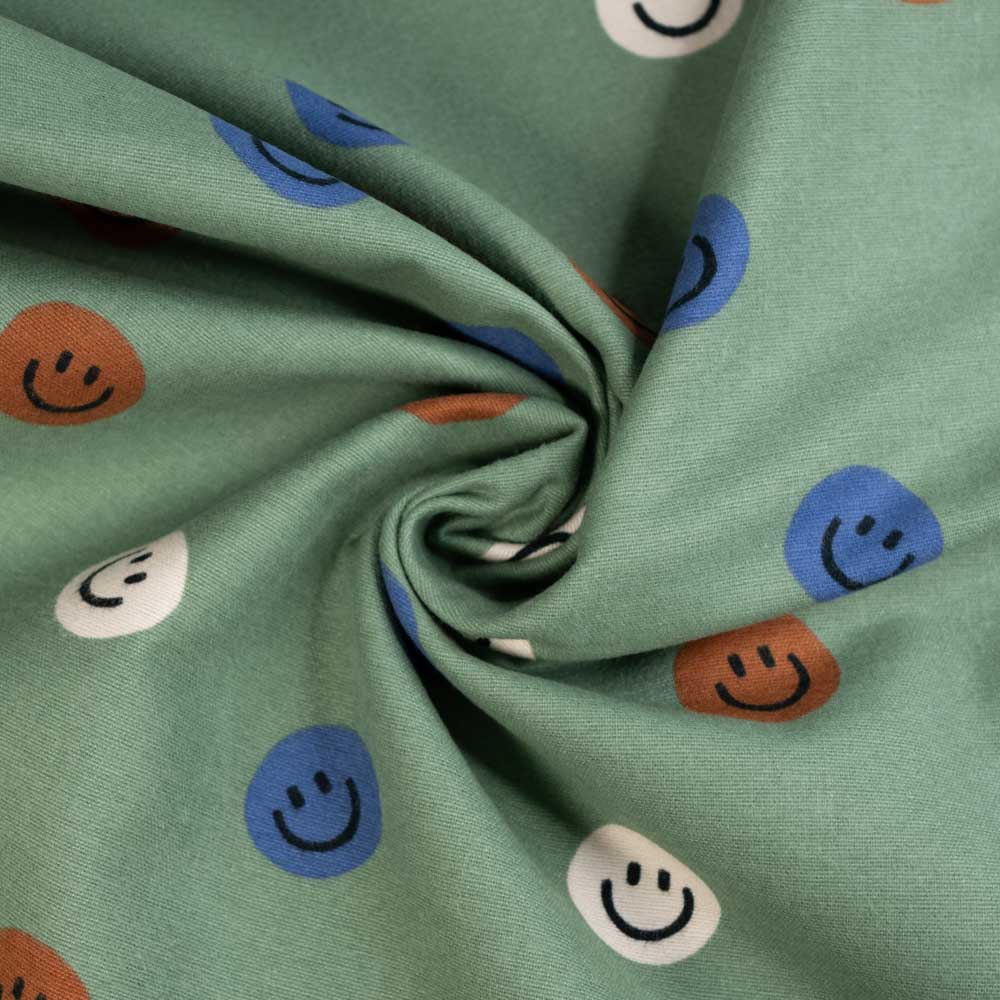 Flanell Baumwolle Smileys khaki