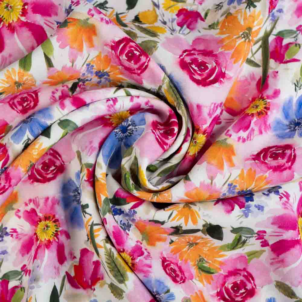 Viskosewebware Blumenwiese weiß