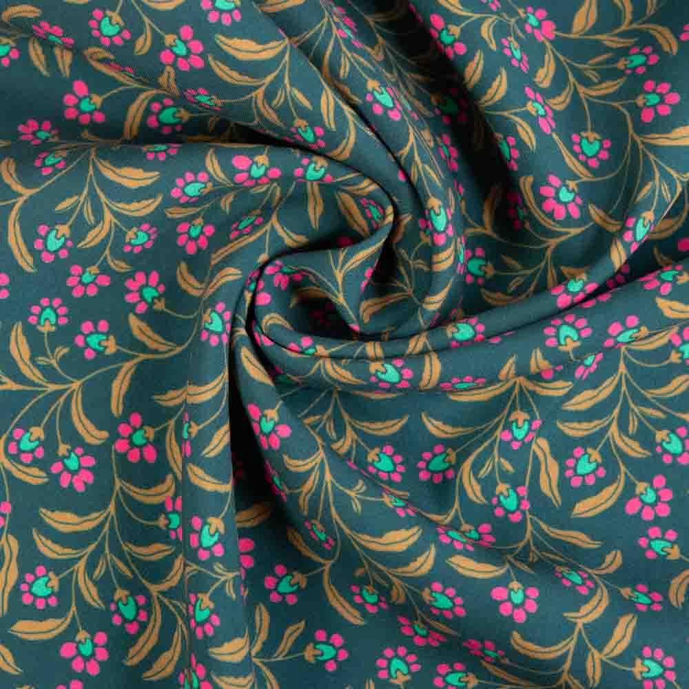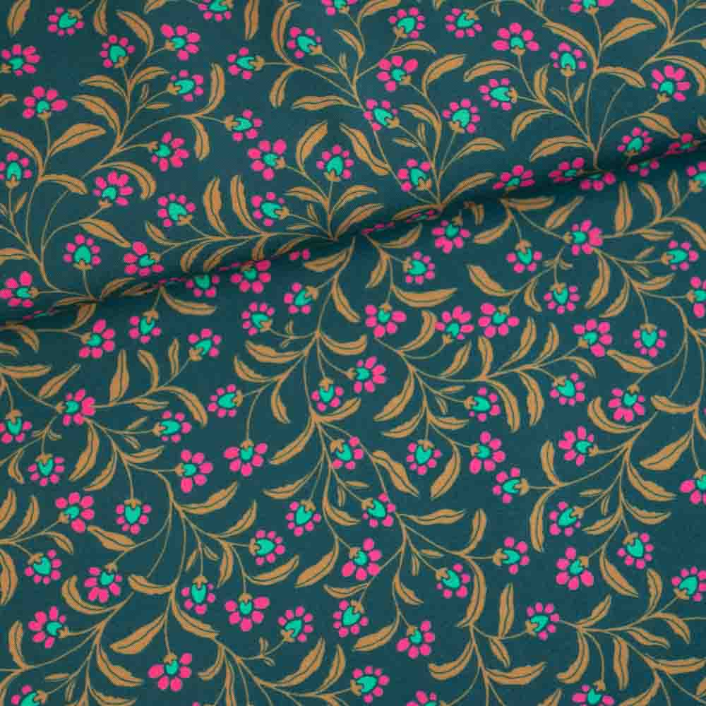 Viskosewebware Blümchen tannengrün