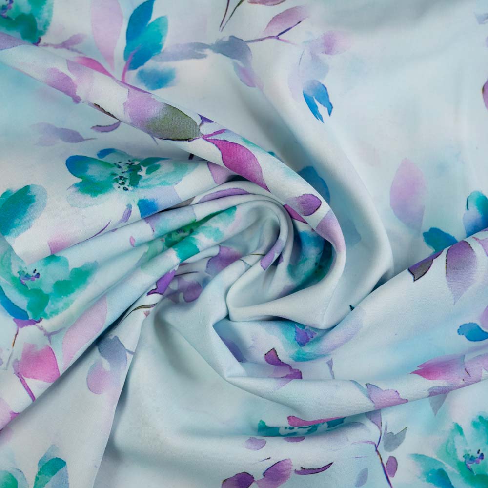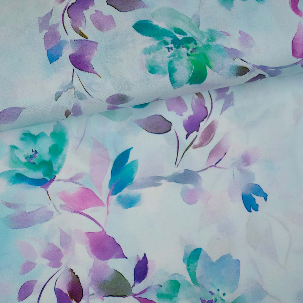 Viskosewebware Aquarellblumen pastellblau