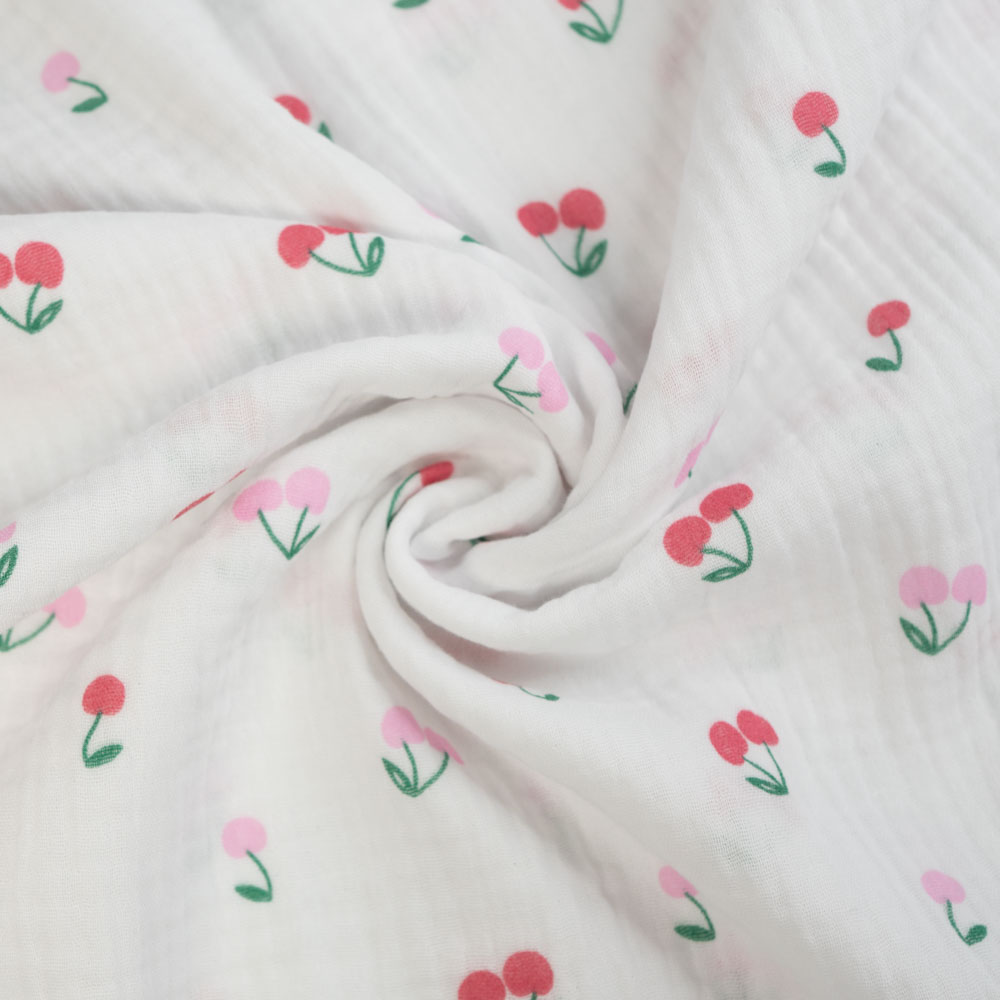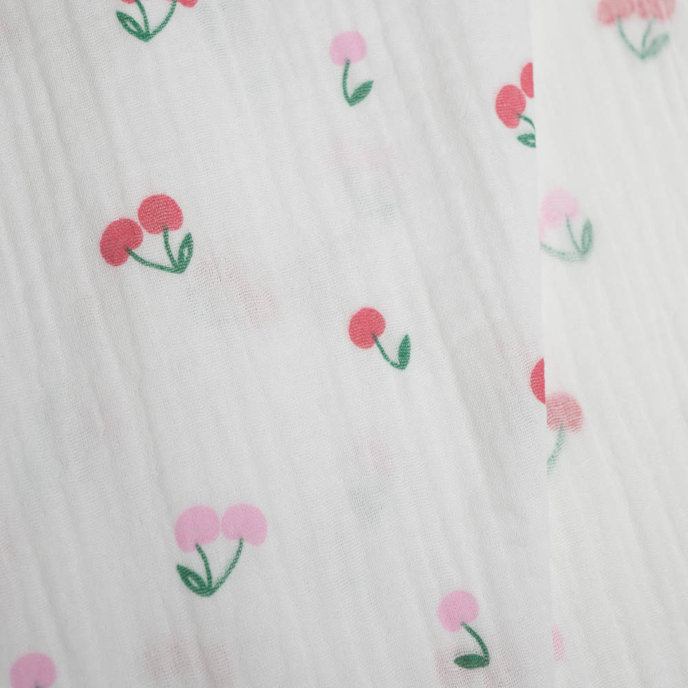Musselin Double Gauze Kirschen weiß