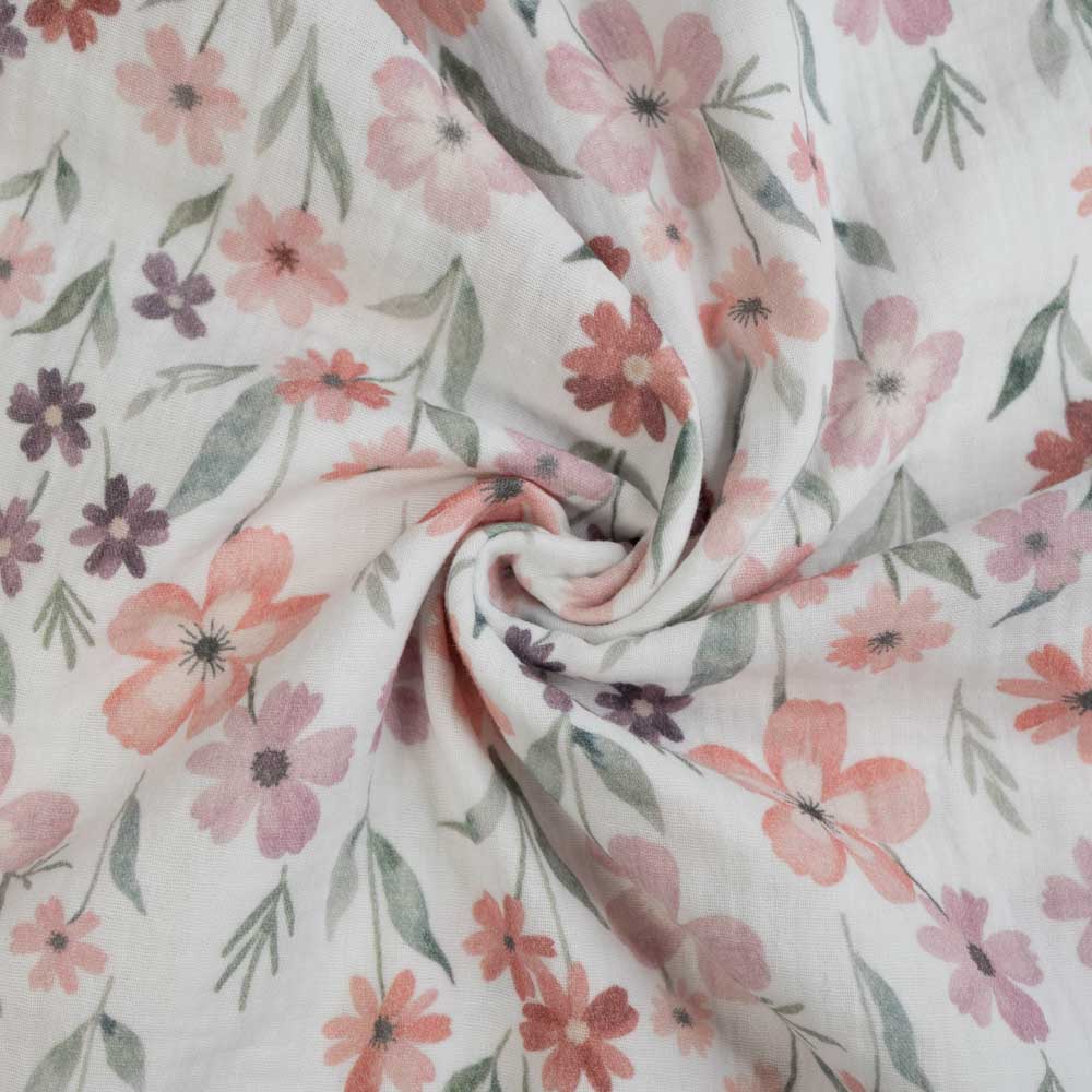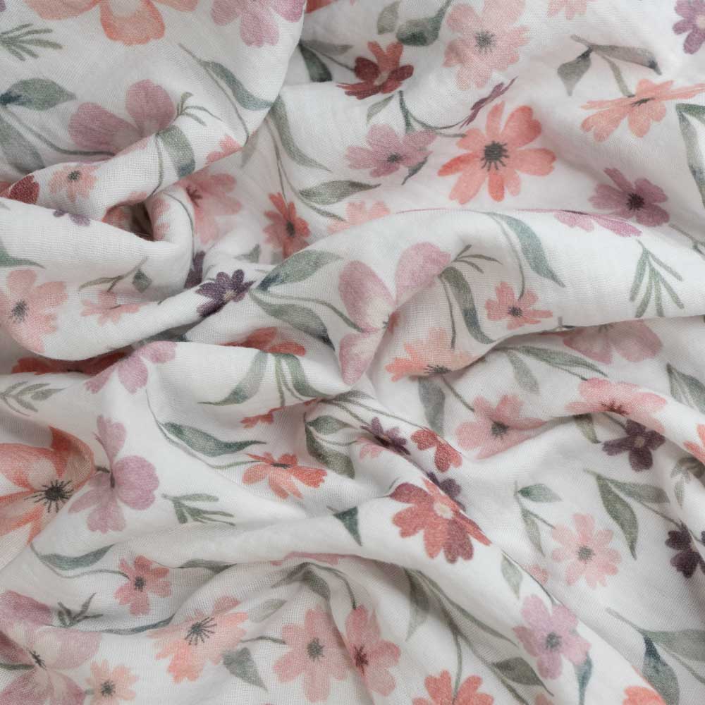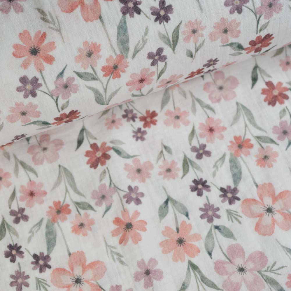 Musselin Double Gauze Blumenliebe weiß