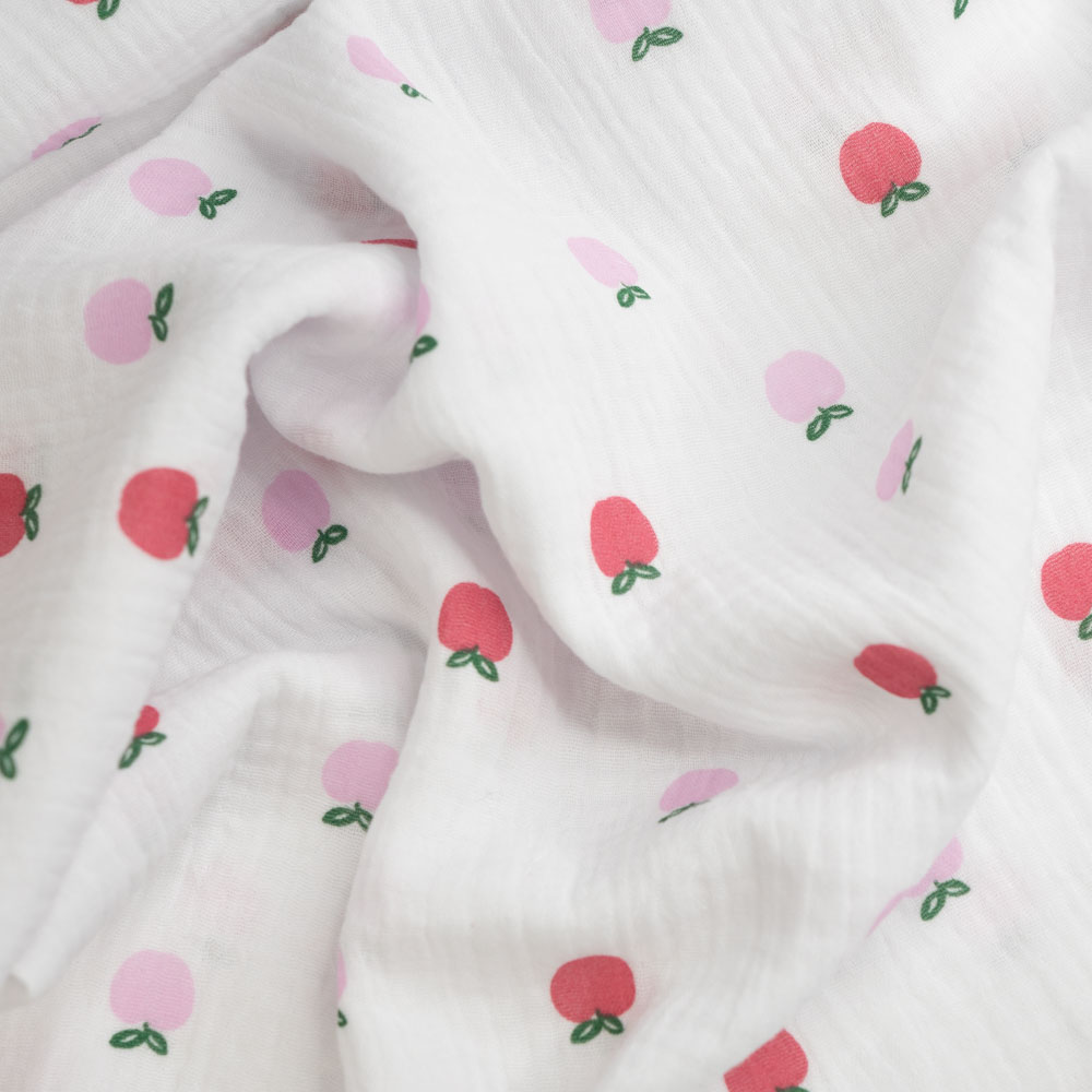 Musselin Double Gauze Äpfel weiß