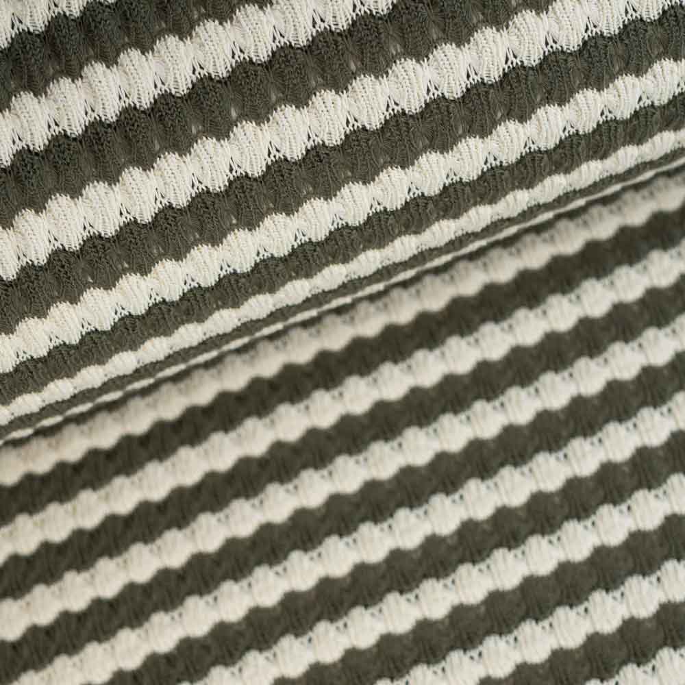Jacquard Strick Häkel-Look Streifen khaki
