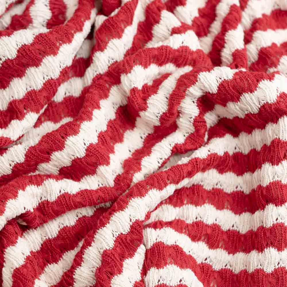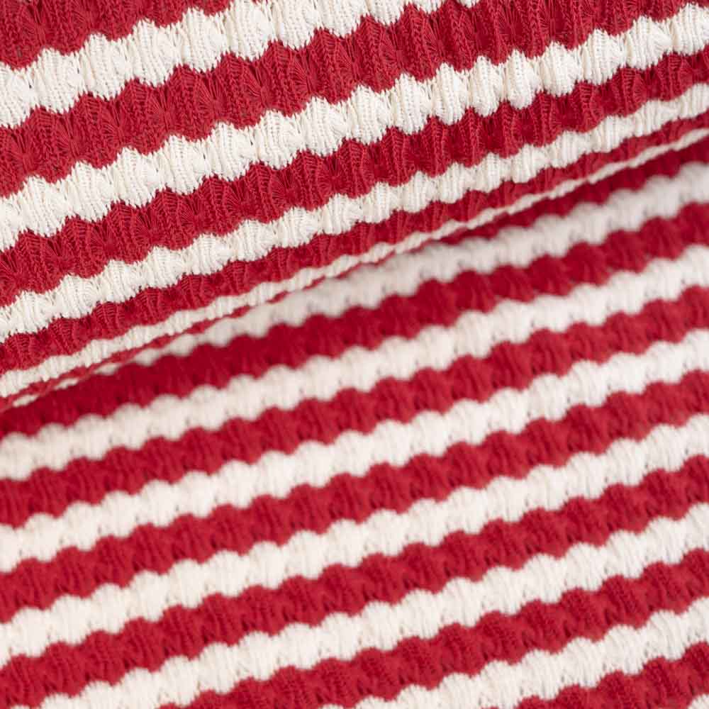 Jacquard Strick Häkel-Look Streifen rot