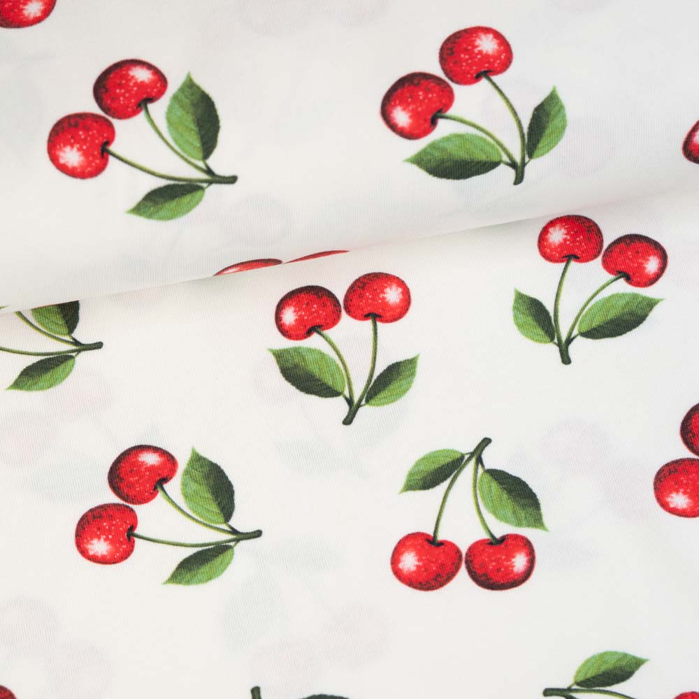 Baumwolljersey Kirschen weiß