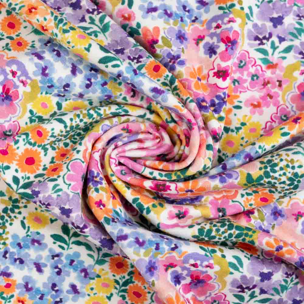 Baumwolljersey bunte Blümchen weiß