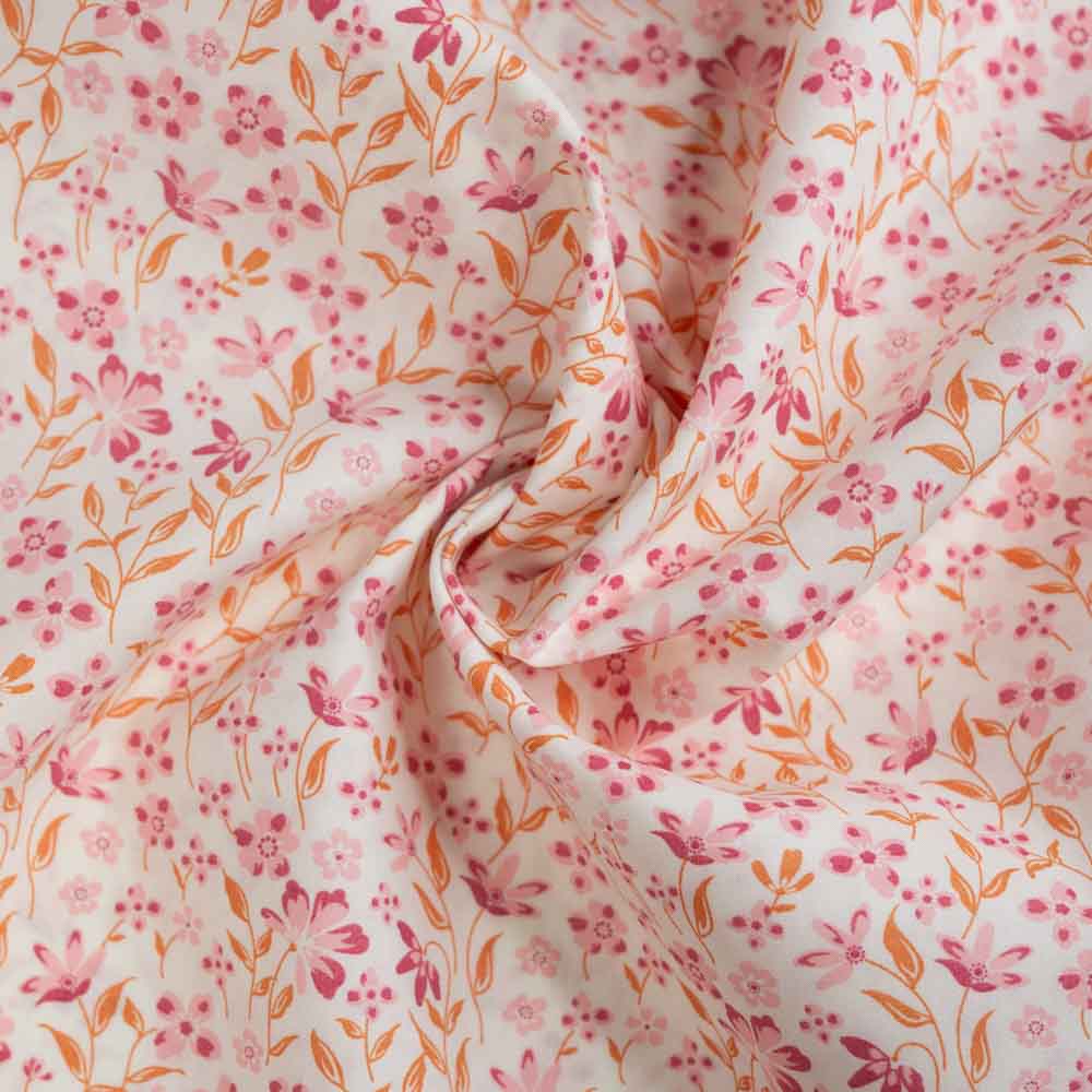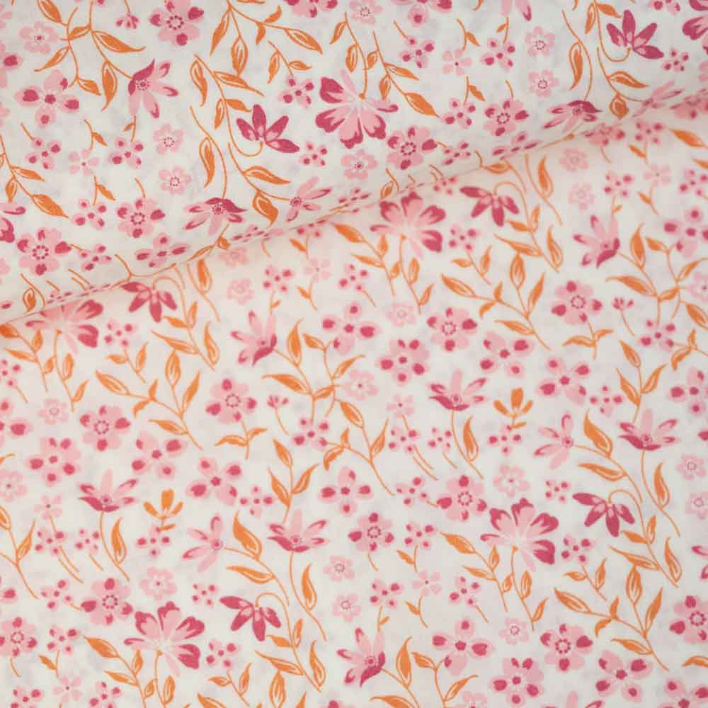 Baumwoll Popeline kleine Blume mit Zweig altrosa