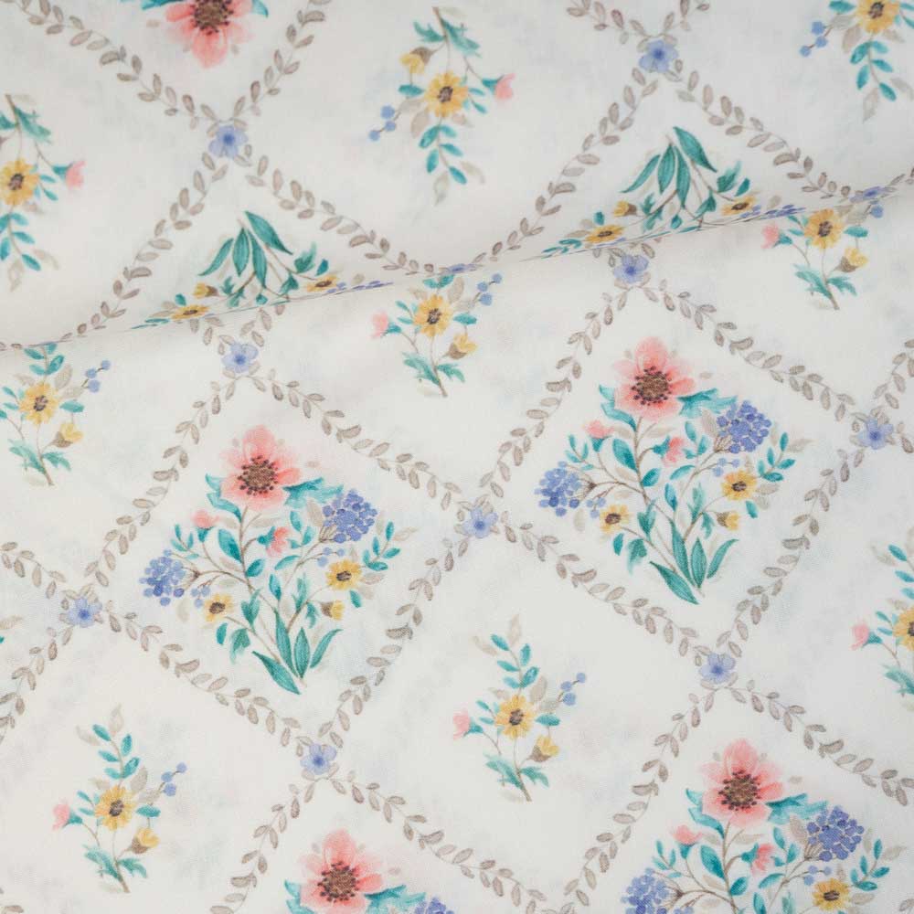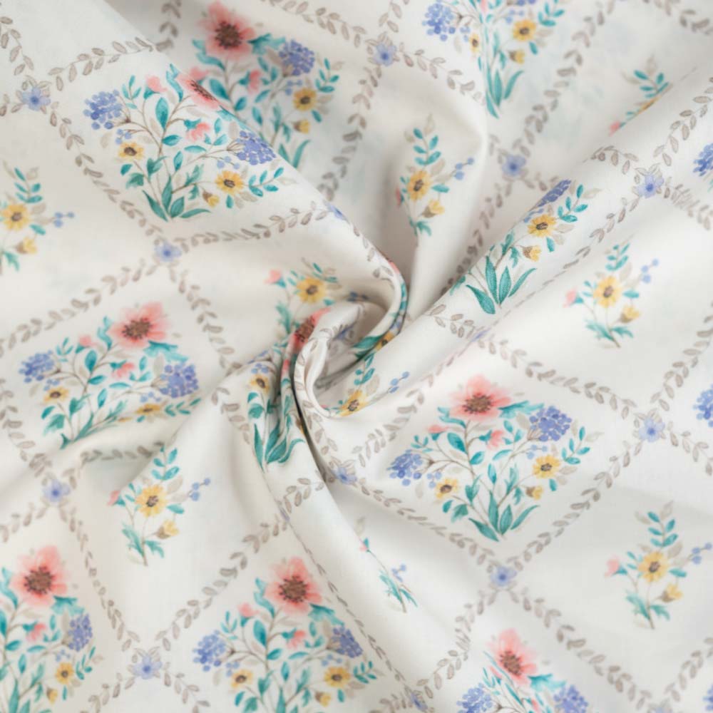 Baumwoll Popeline süße Blümchen im Viereck weiß
