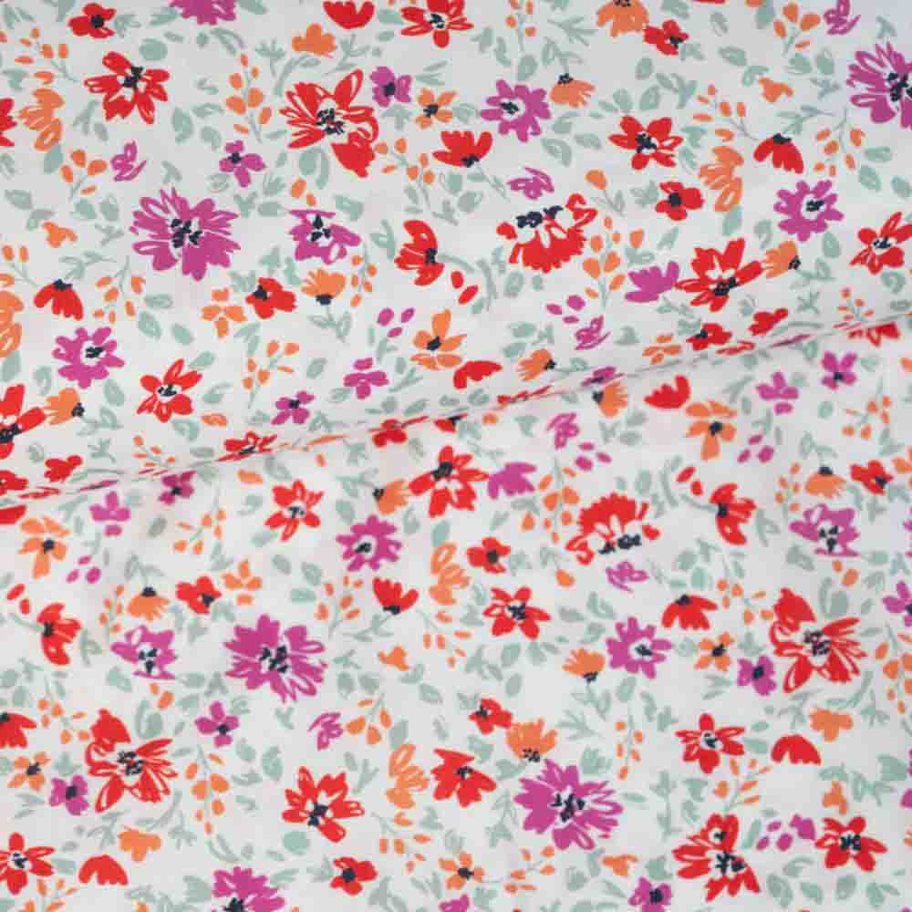 Baumwoll Popeline fine Flower weiß