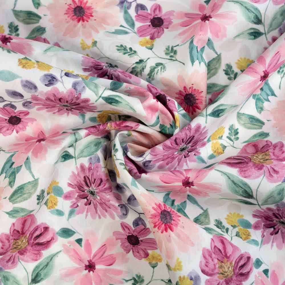 Baumwoll Popeline Aquarell Blumen rosa