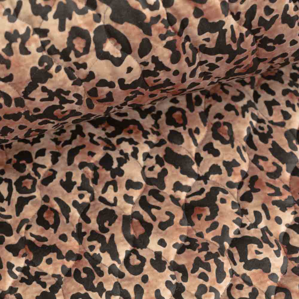 Ein wunderschöner Steppstoff beidseitig nutzbar mit einer leichten Wattierung. Eine Seite ist komplett schwarz und die andere hat ein trendiges Leo Motiv. Der Stoff ist samtig weich.