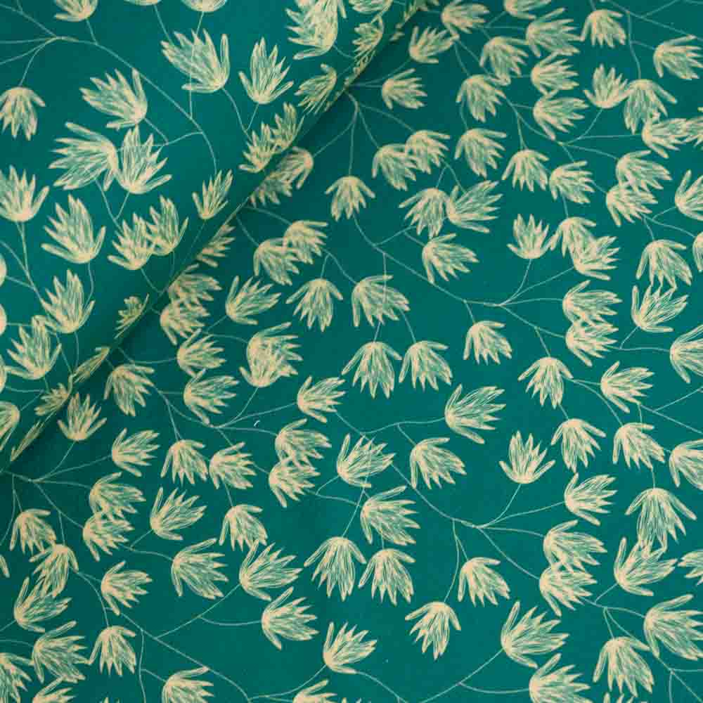 French Terry Sweat Blätterspiel dunkelgrün
