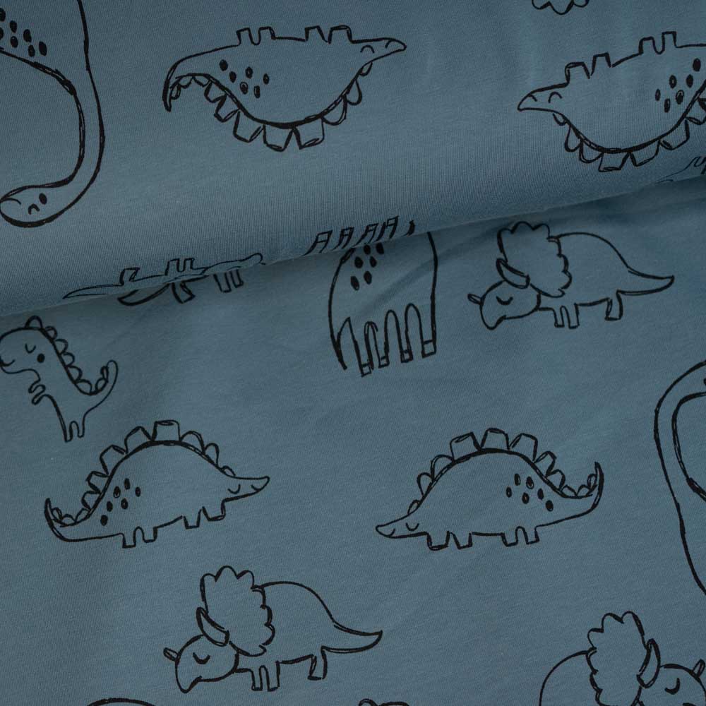 French Terry Sweat Dinos jeansblau