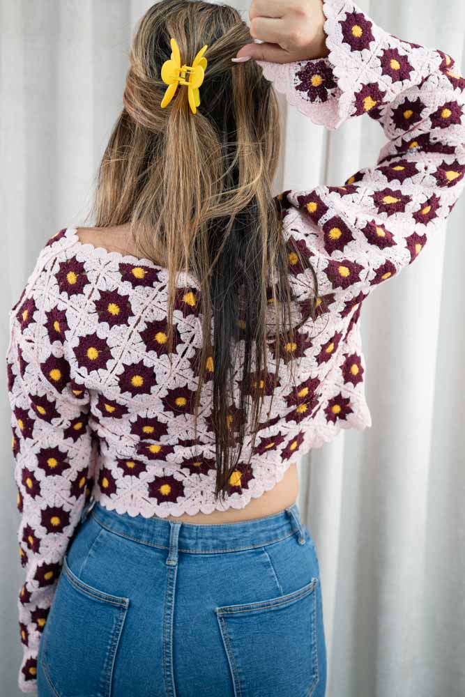 Schöner Häkel Cardigan mit Schleifendetails und leicht ausgestelltem Ärmel.