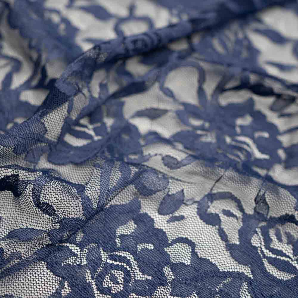 Das verspielte florale Muster machen diese Spitze aus Italien zu einem Kunstwerk. Sie ist angenehm zu tragen und sehr elastisch. Ideal für edle Abendkleider, Brautmode oder elegante Dessous, verleiht sie jedem Kleidungsstück einen Hauch von Luxus und Raffinesse.