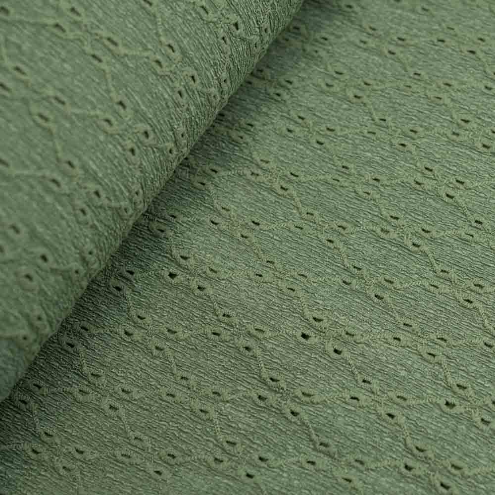 Dieser angenehm weiche und elastische Stoff eignet sich ideal für Shirts, Kleider, Tunikas und vieles mehr. Die feine Lochstickerei verleiht ihm eine besondere, elegante Note und macht jedes Kleidungsstück zu einem Hingucker. Perfekt für bequeme und stilvolle Mode.