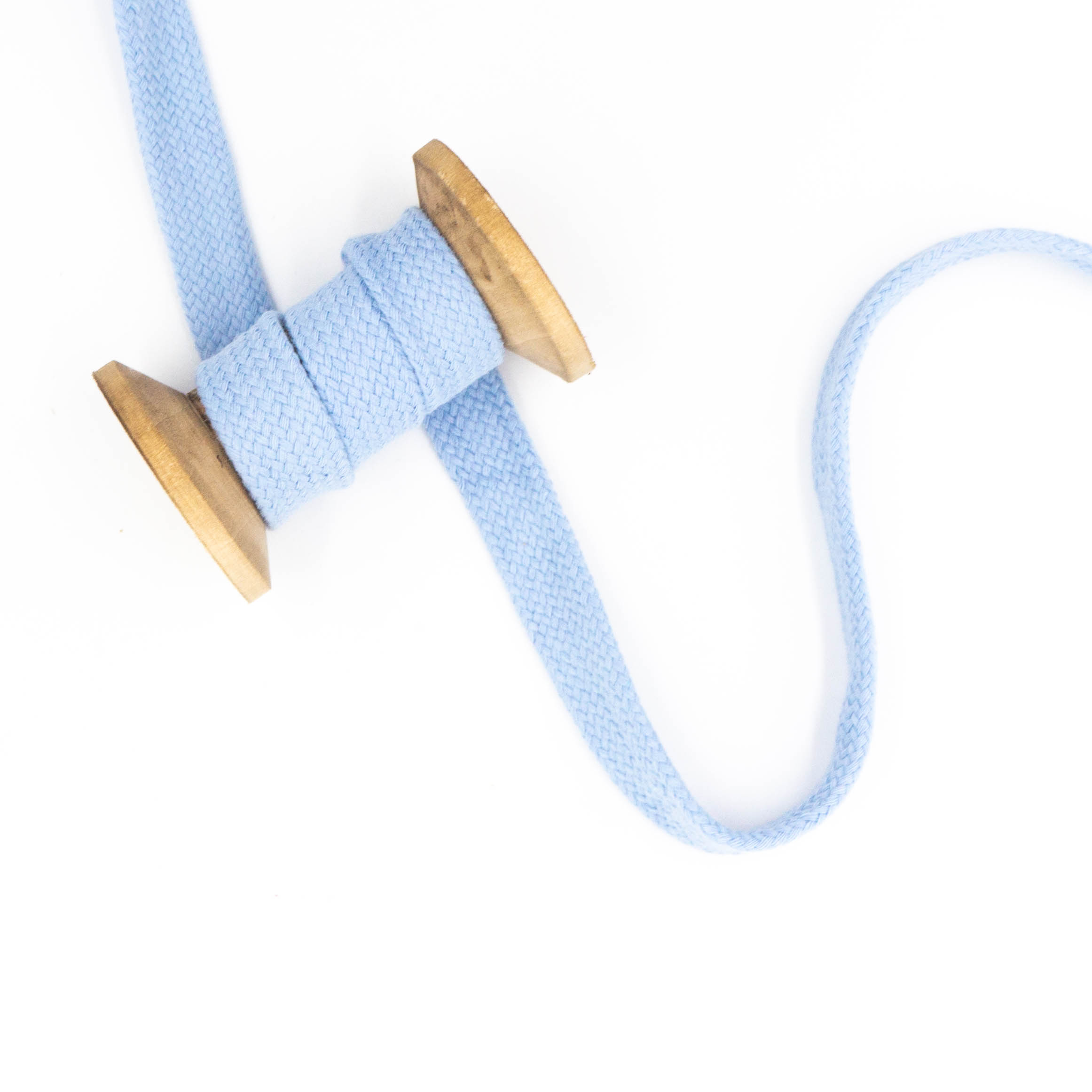 Die Flachkordel eignet sich besonders gut als Band für Zugverschlüsse an Beuteln oder Taschen aber auch für Tunnelzüge an Hosen und Hoodies.