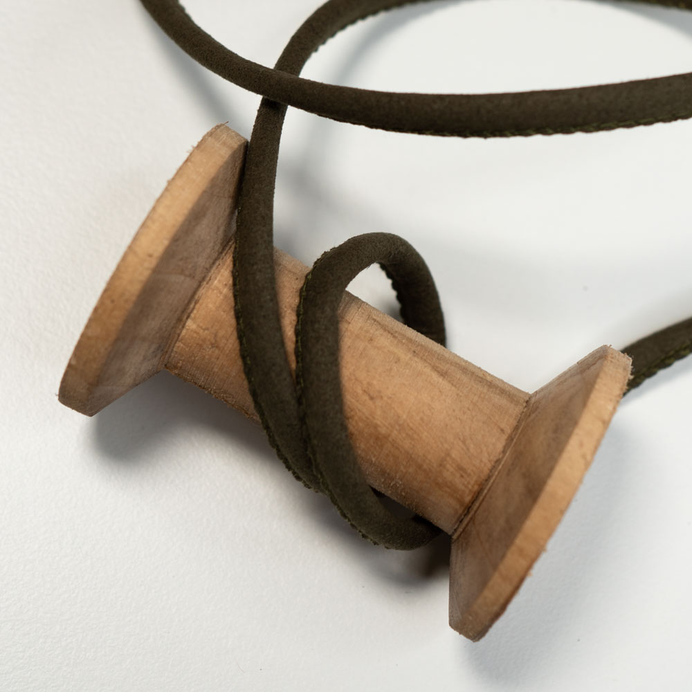 Eine eher festere Kordel aus 100% Polyester.