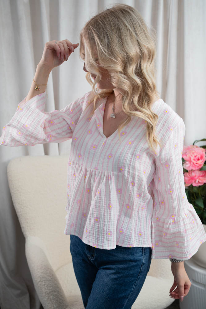 Musselin Bluse Stripes & Flowers rosa