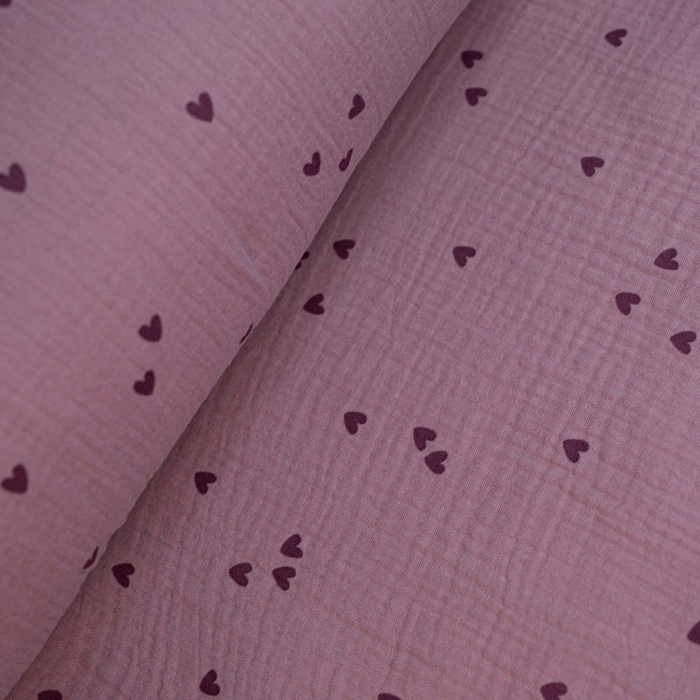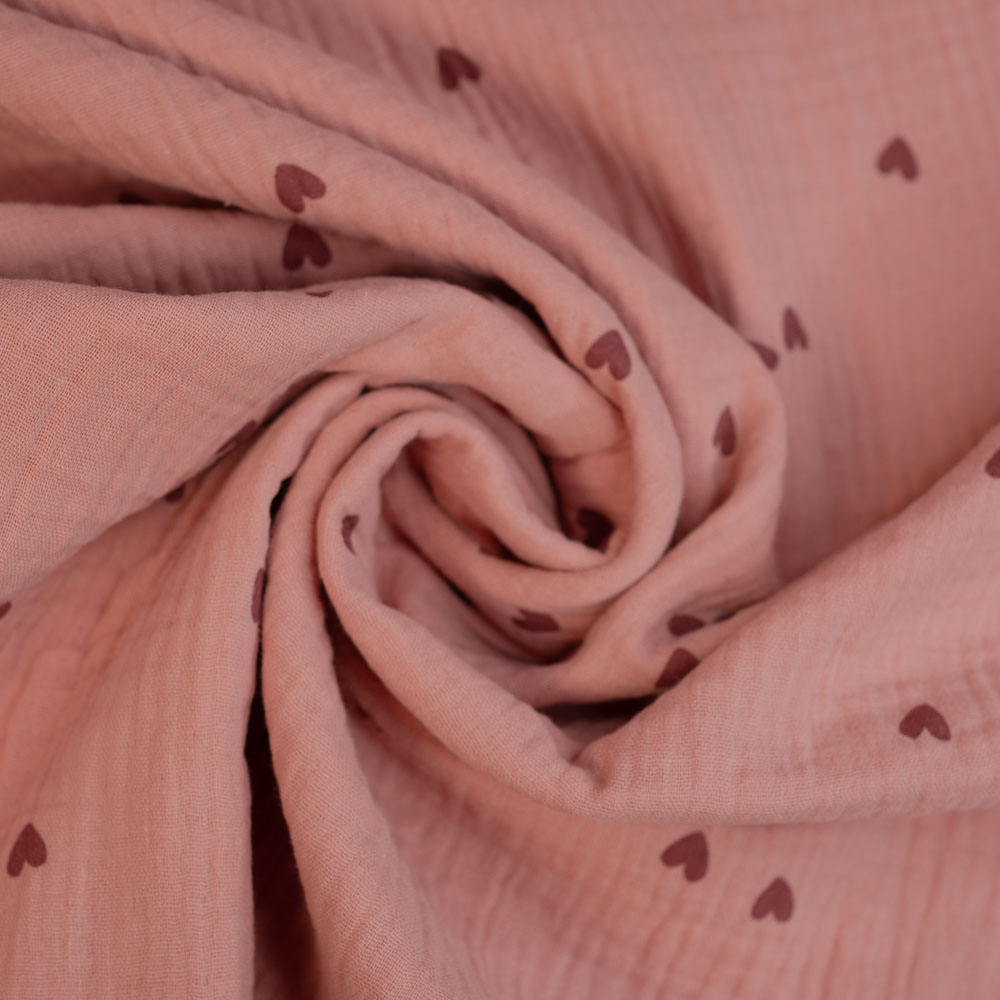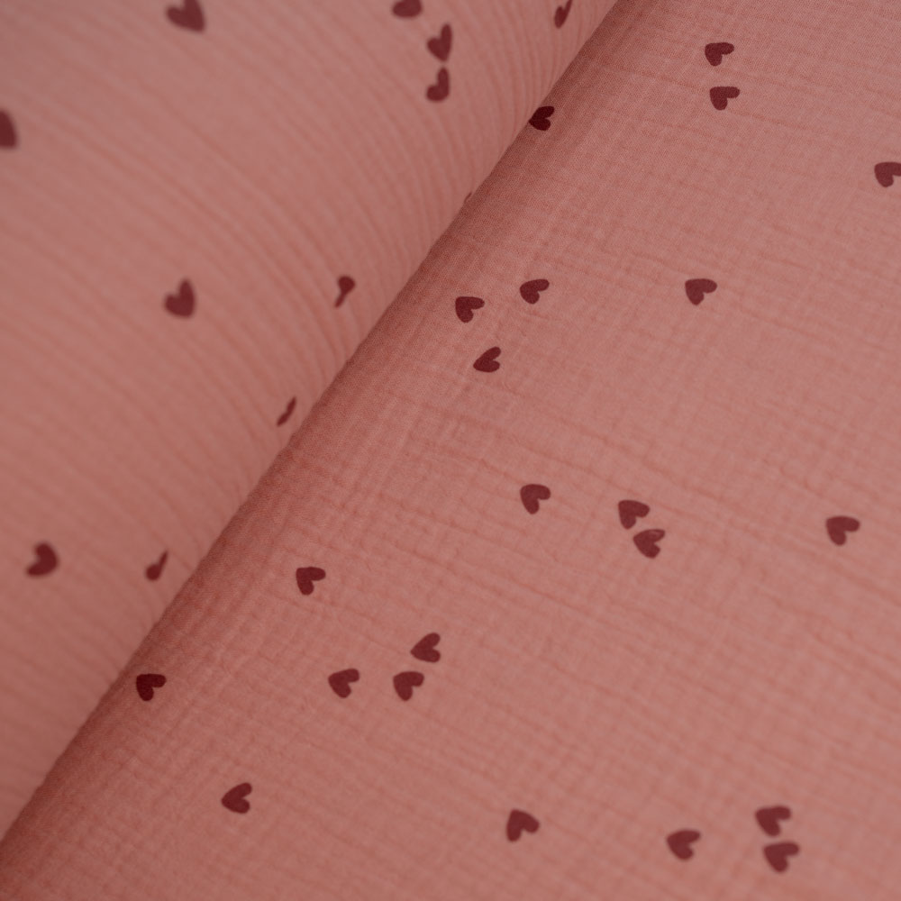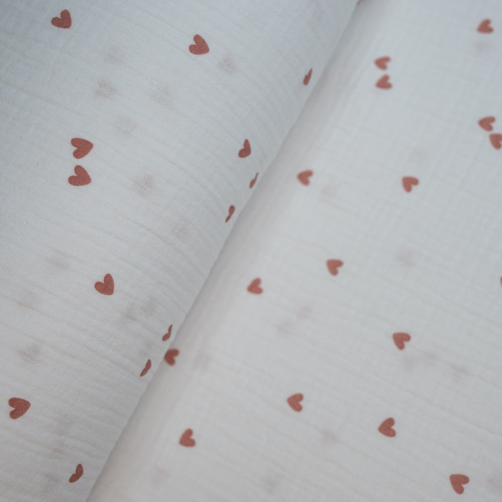 Musselin Double Gauze Herzen altrosa