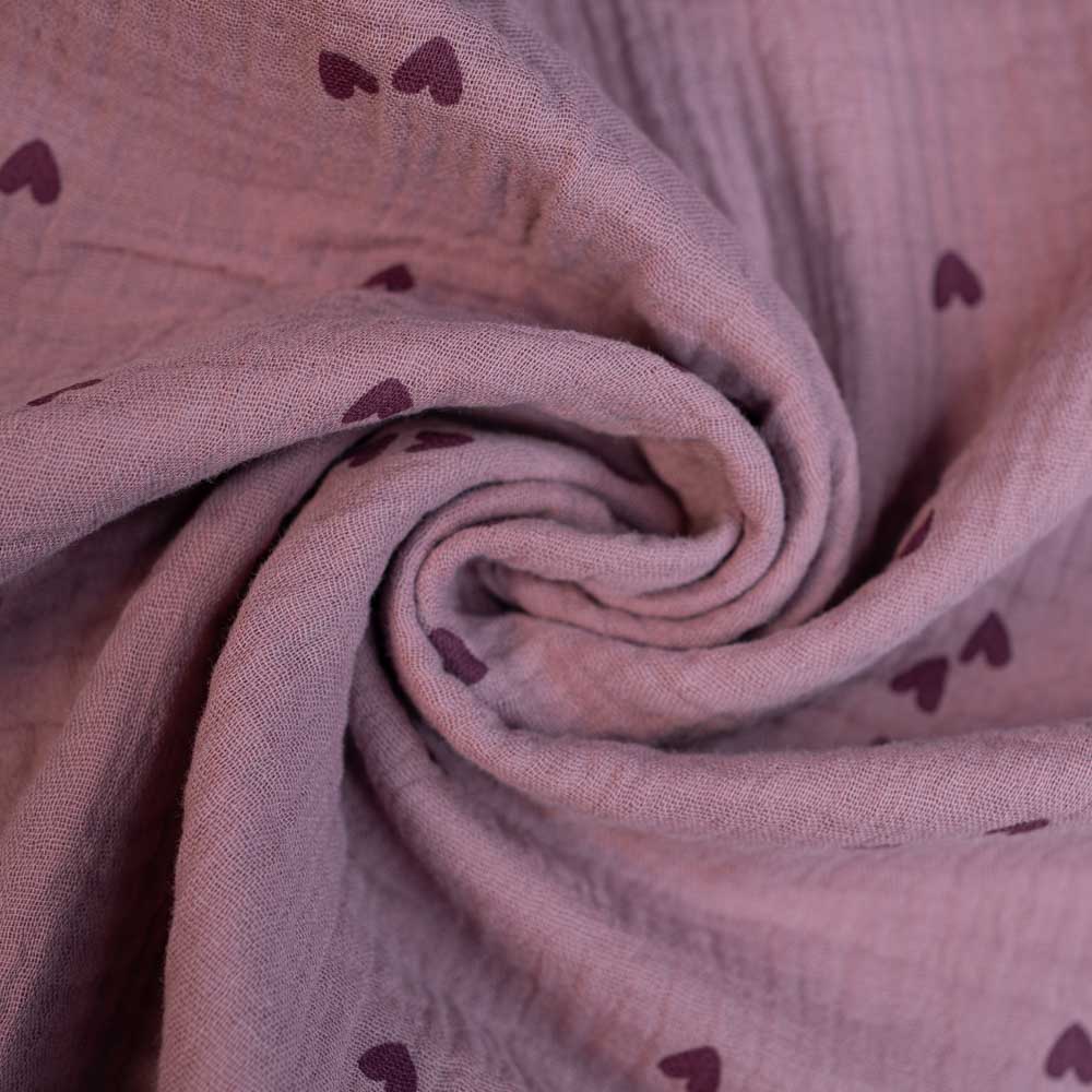 Musselin Double Gauze Herzen beere-flieder