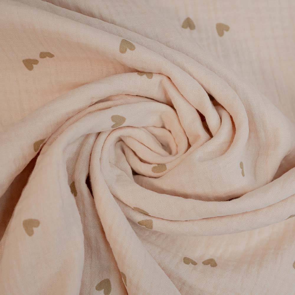 Musselin Double Gauze Herzen beige-taupe