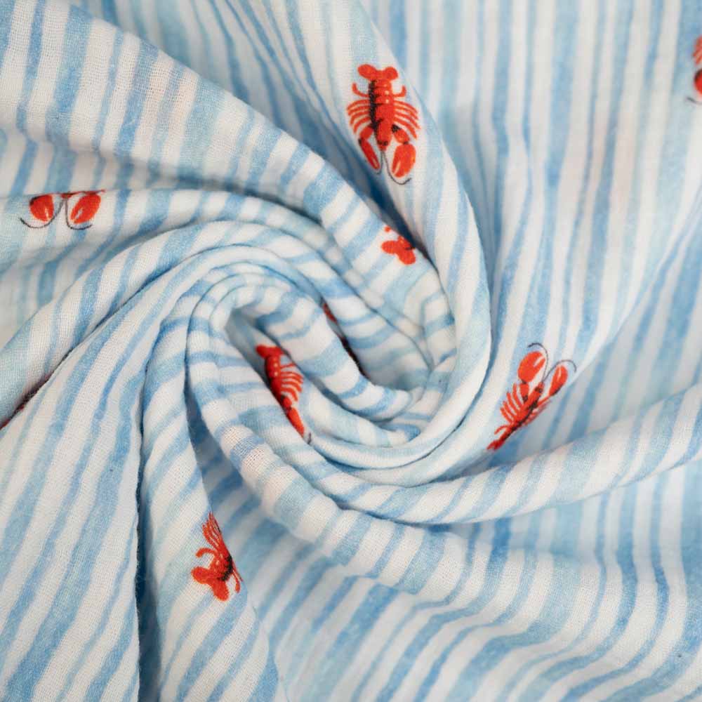 Musselin Double Gauze kleiner Hummer blau