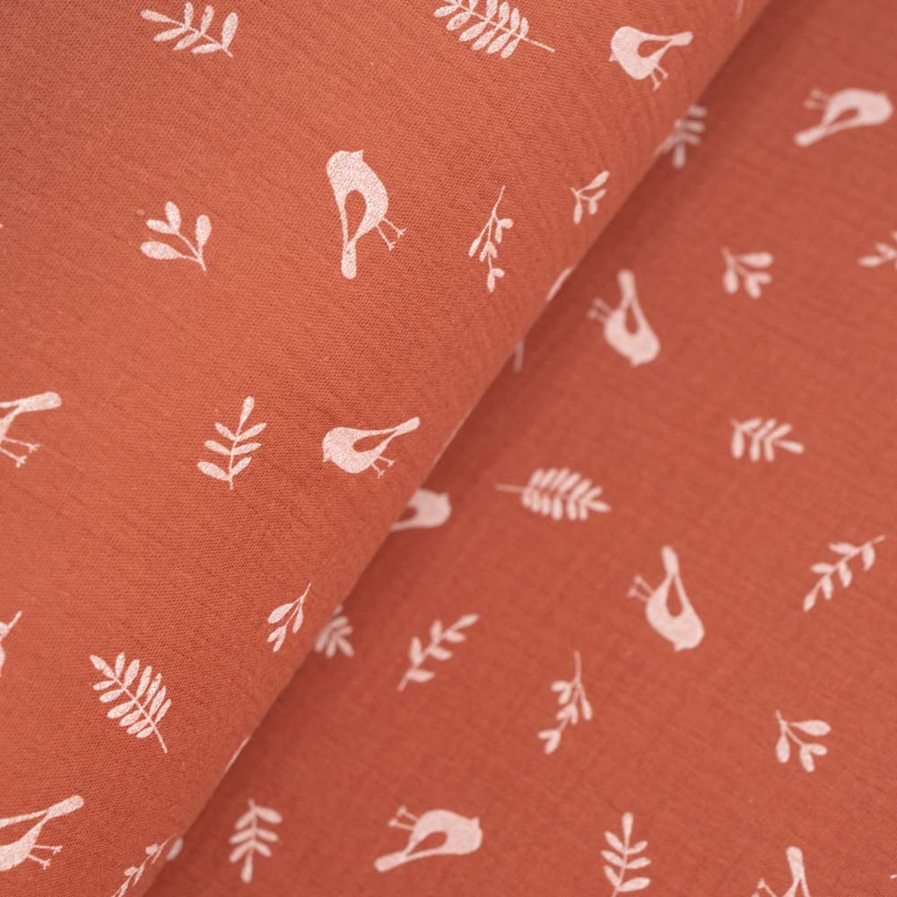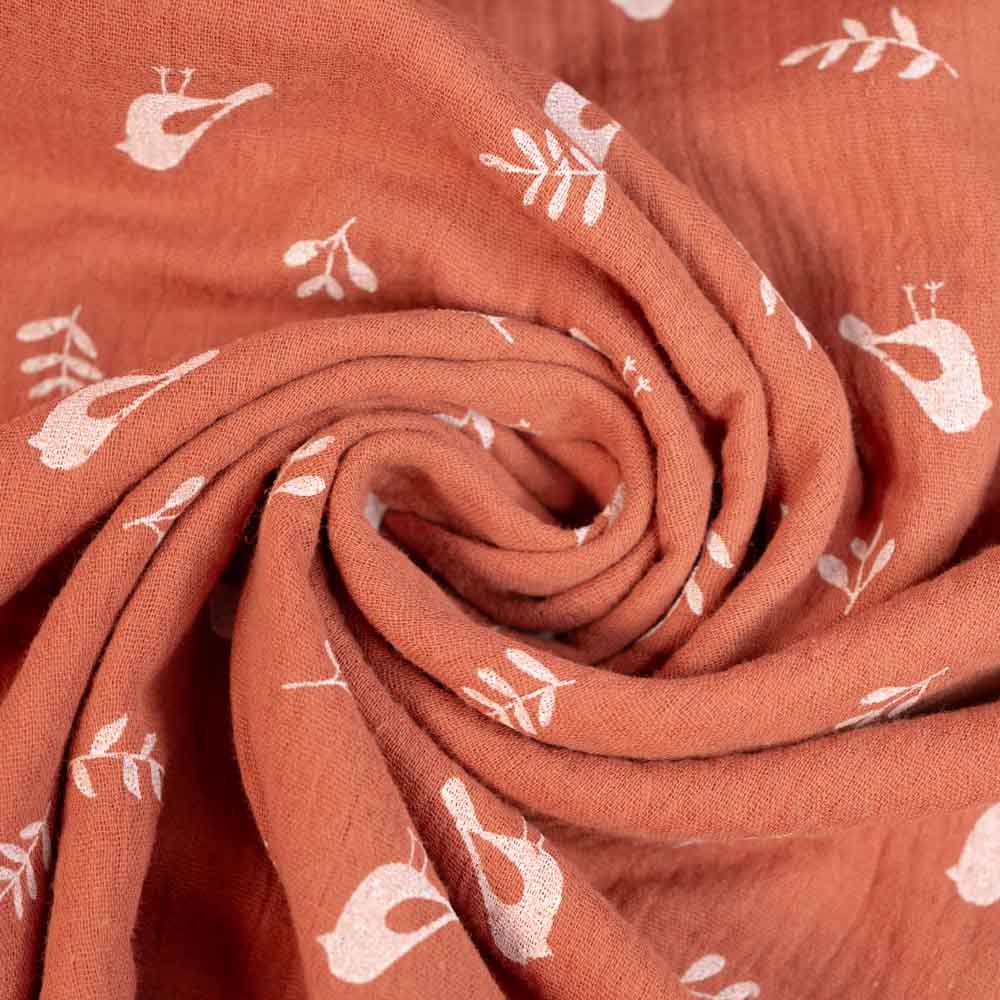 Musselin Double Gauze Vögelchen terra