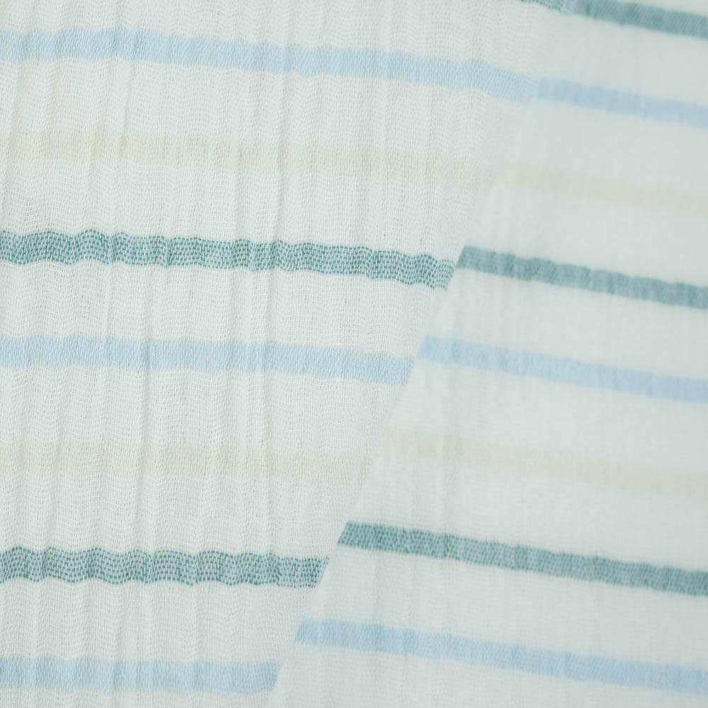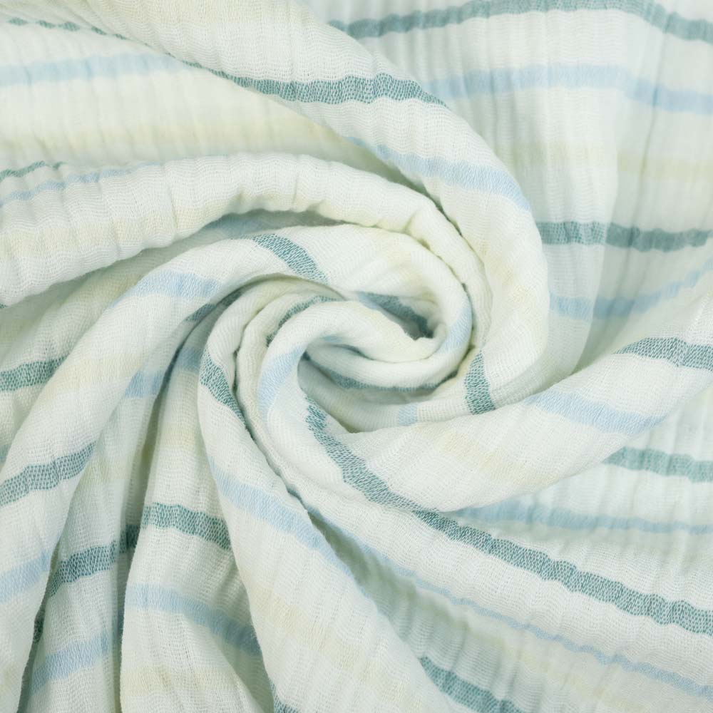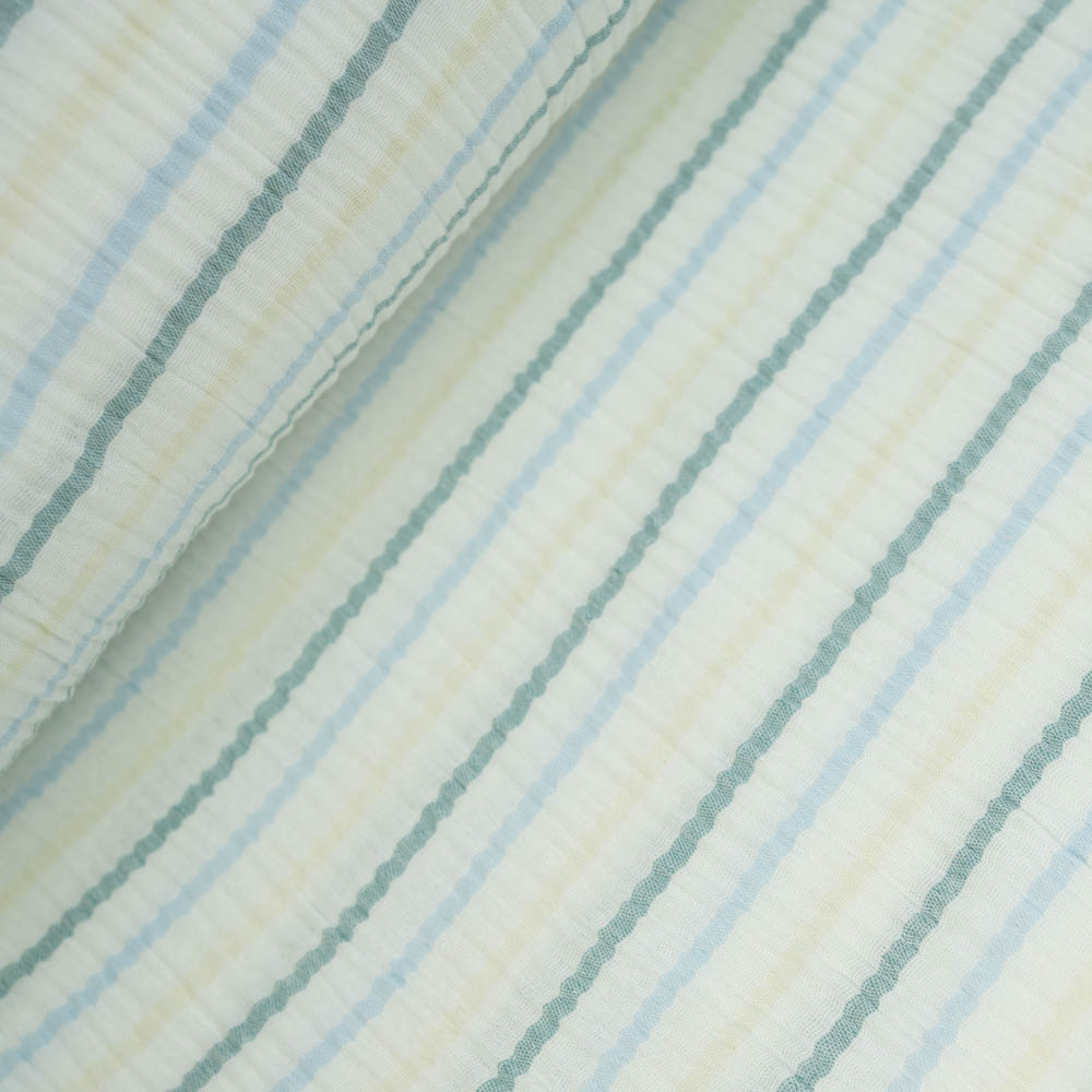 Musselin Double Streifen petrol-blau-gelb