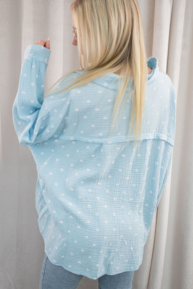 Musselinbluse Herzen Isabela hellblau