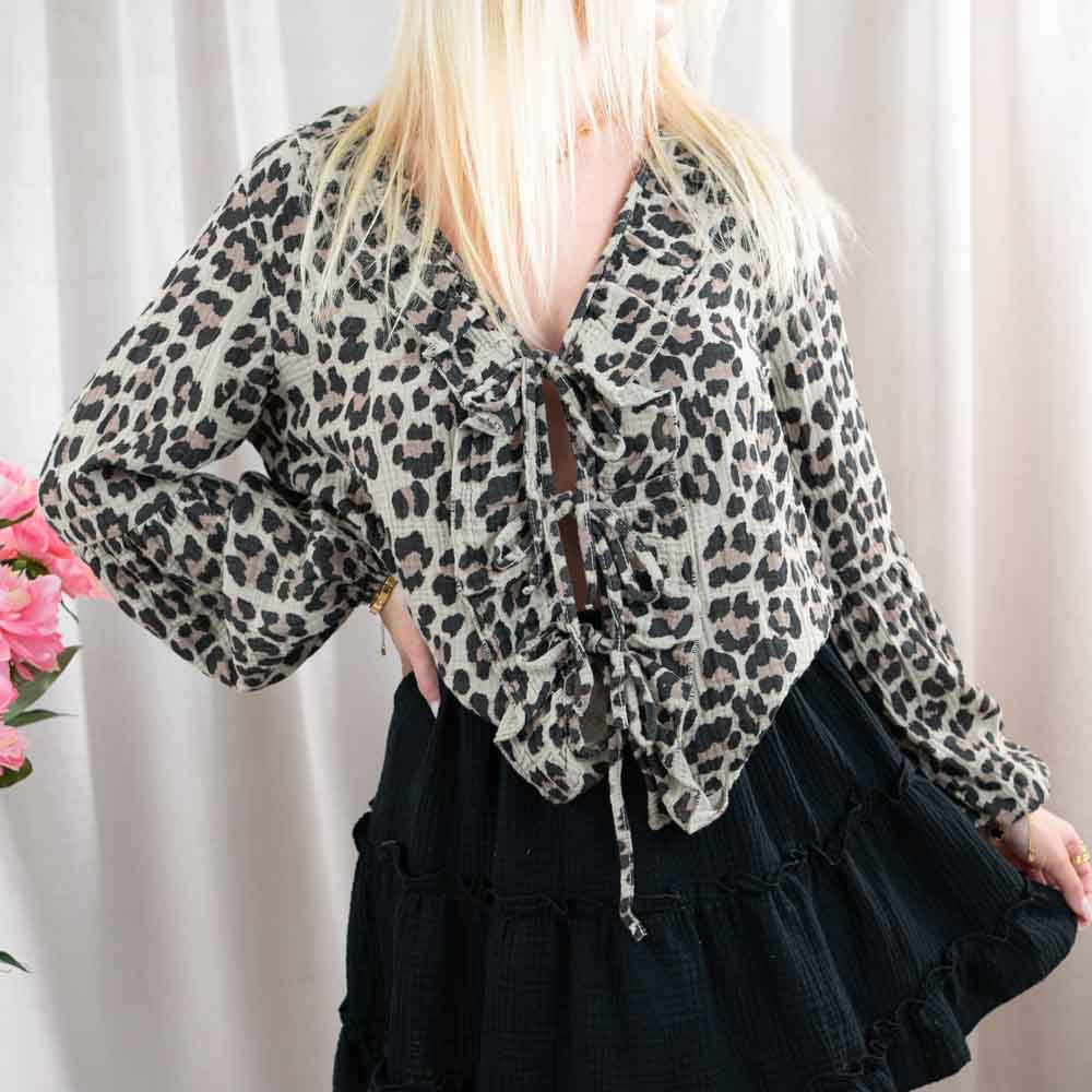 Lässig geschnittene Musselin Bluse mit Ballonärmeln und süßen Volants.. Vorn zum Binden.