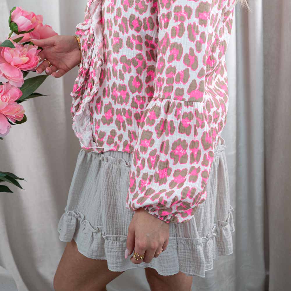 Lässig geschnittene Musselin Bluse mit Ballonärmeln und süßen Volants.. Vorn zum Binden.