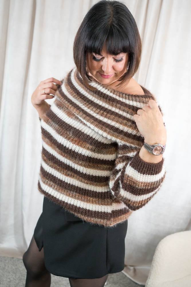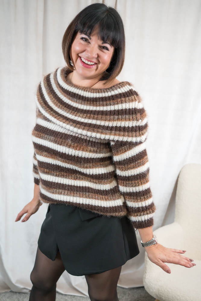 Off shoulder Pullover Fluffy Streifen chocolate