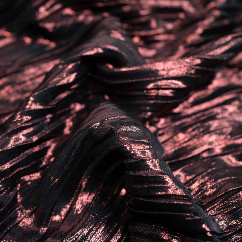 Dieser wunderschöne Plisseestoff besticht durch seine feine Struktur und den modernen Metalleffekt, der je nach Lichteinfall dezent schimmert. Leicht und fließend im Fall, eignet er sich ideal für stilvolle Röcke.