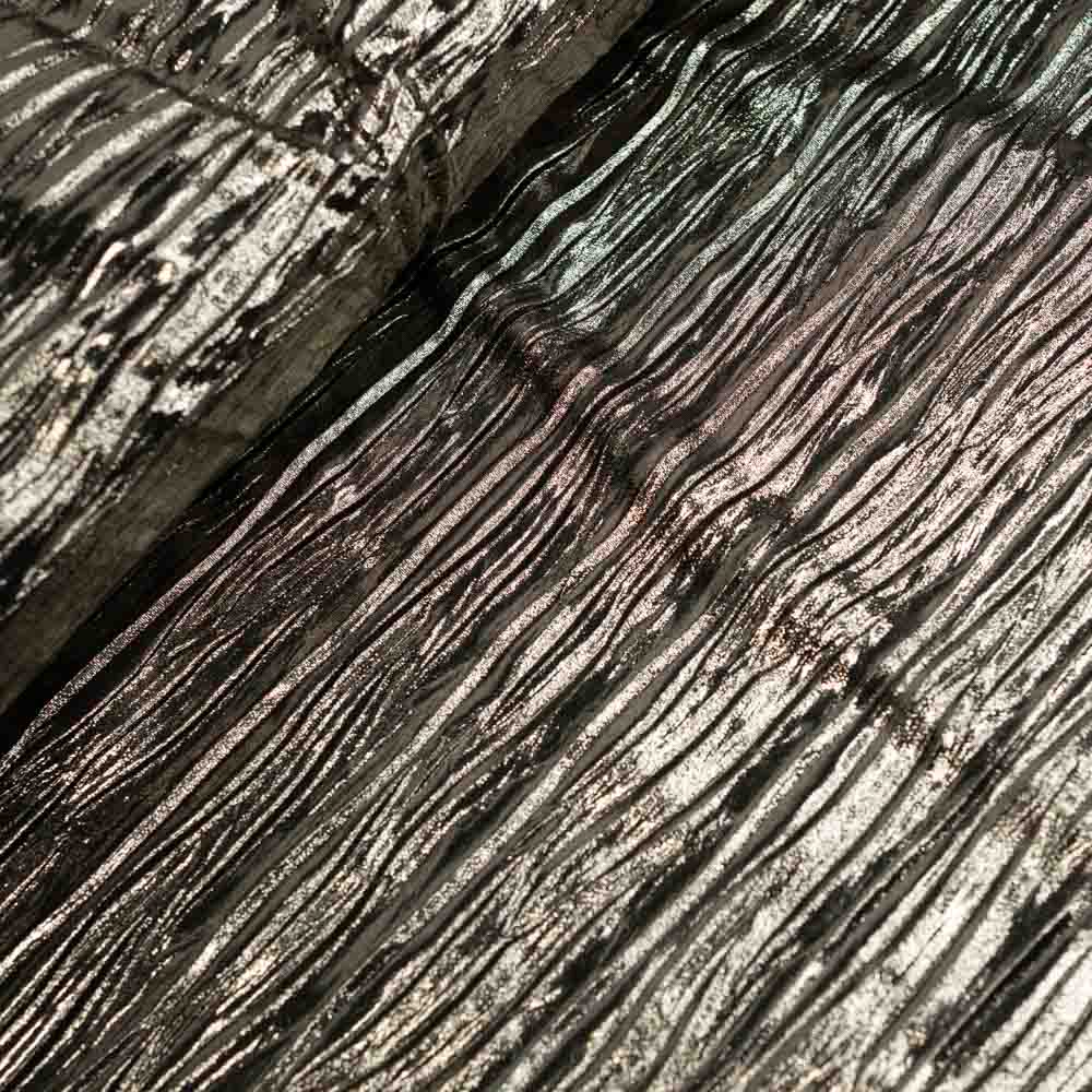 Dieser wunderschöne Plisseestoff besticht durch seine feine Struktur und den modernen Metalleffekt, der je nach Lichteinfall dezent schimmert. Leicht und fließend im Fall, eignet er sich ideal für stilvolle Röcke.